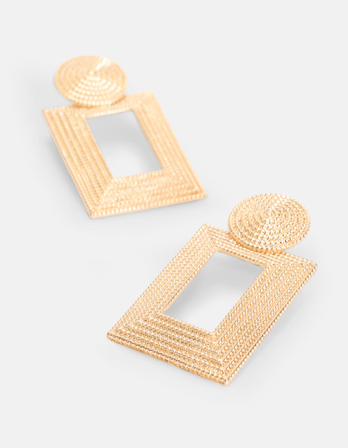 Golden eyecatchers! De Gouden Rechthoekige Oorbellen worden gekenmerkt door een rechthoekige vorm en een ronde sluiting. Verder hebben de oorbellen een gouden kleur met een subtiel design, waardoor de oorbellen extra opvallen. Maak de look compleet door de oorbellen te combineren met andere sieranden uit onze collectie.