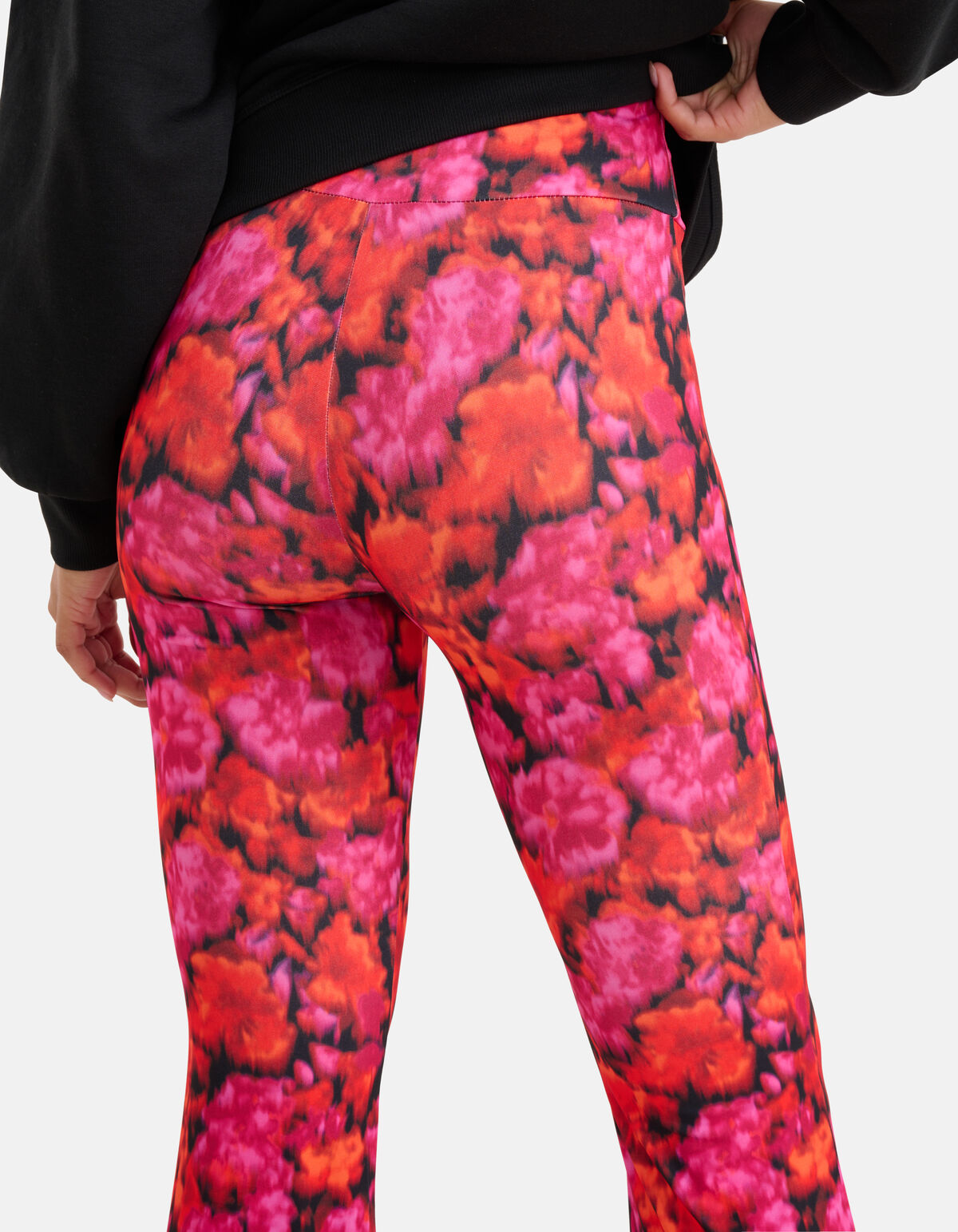 Step into the spotlight met de Flared Broek! De broek heeft een hoge taille, een uitlopend flared model, een stretch stof en een elastieke band in de taille. Het iem wordt gekenmerkt door de roze kleur met een all-over print. Het is gemaakt van polyester en elastaan. Door deze samenstelling is het sterk van kwaliteit, vormvast en rekbaar. Draag het samen met een sweater en een paar sneakers voor een edgy look! Het model heeft een lengte van 182 cm en draagt maat S. Het artikel heeft een totale lengte van 83,5 cm bij maat S.