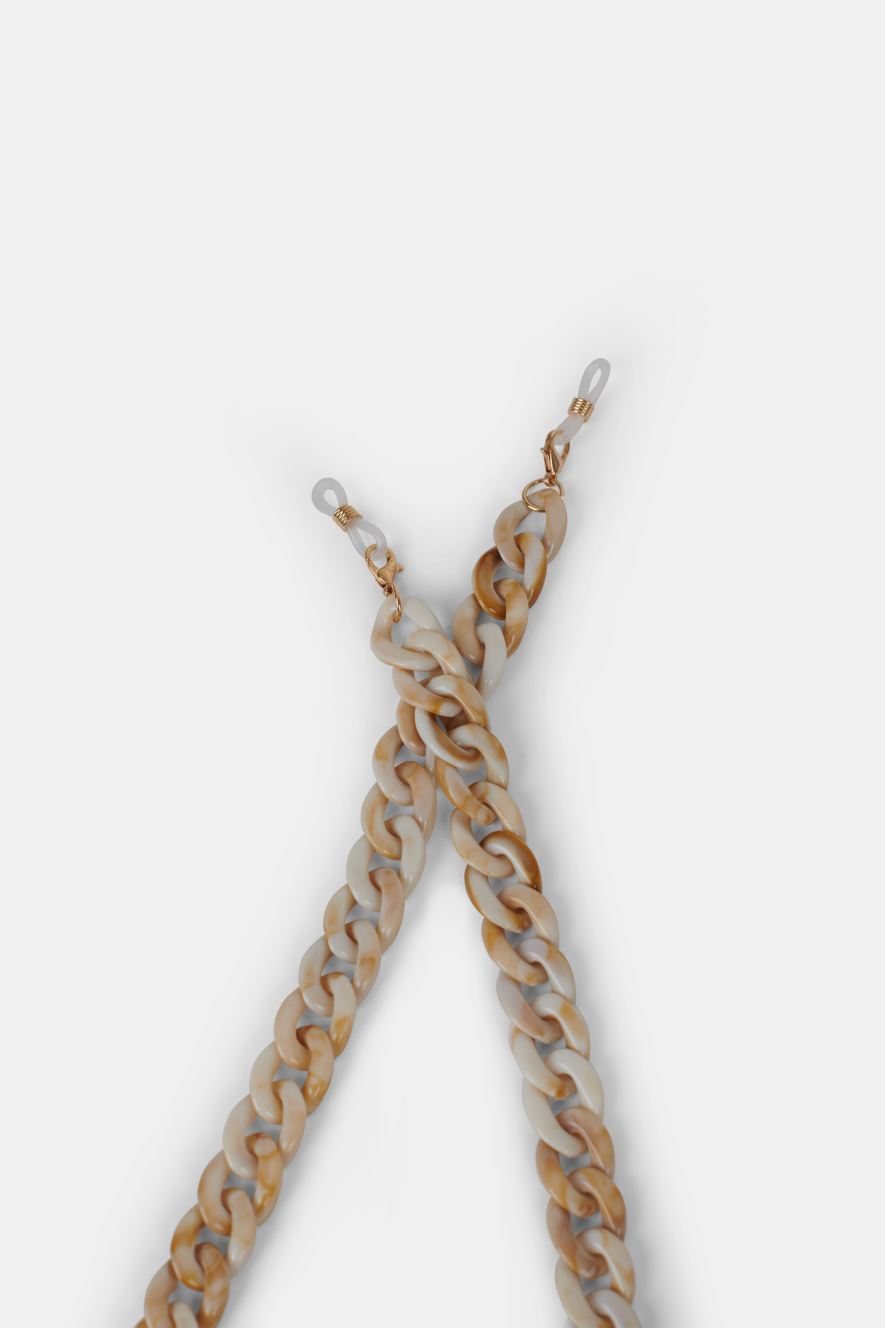 Maak je zonnebril stijlvol met een zonnebrilkoordje! De Big Chain zonnebrilkoord wordt gekenmerkt door de grove schakels in een marmer patroon in de kleur beige. Combineer het koordje samen met jouw favoriete zonnebril.