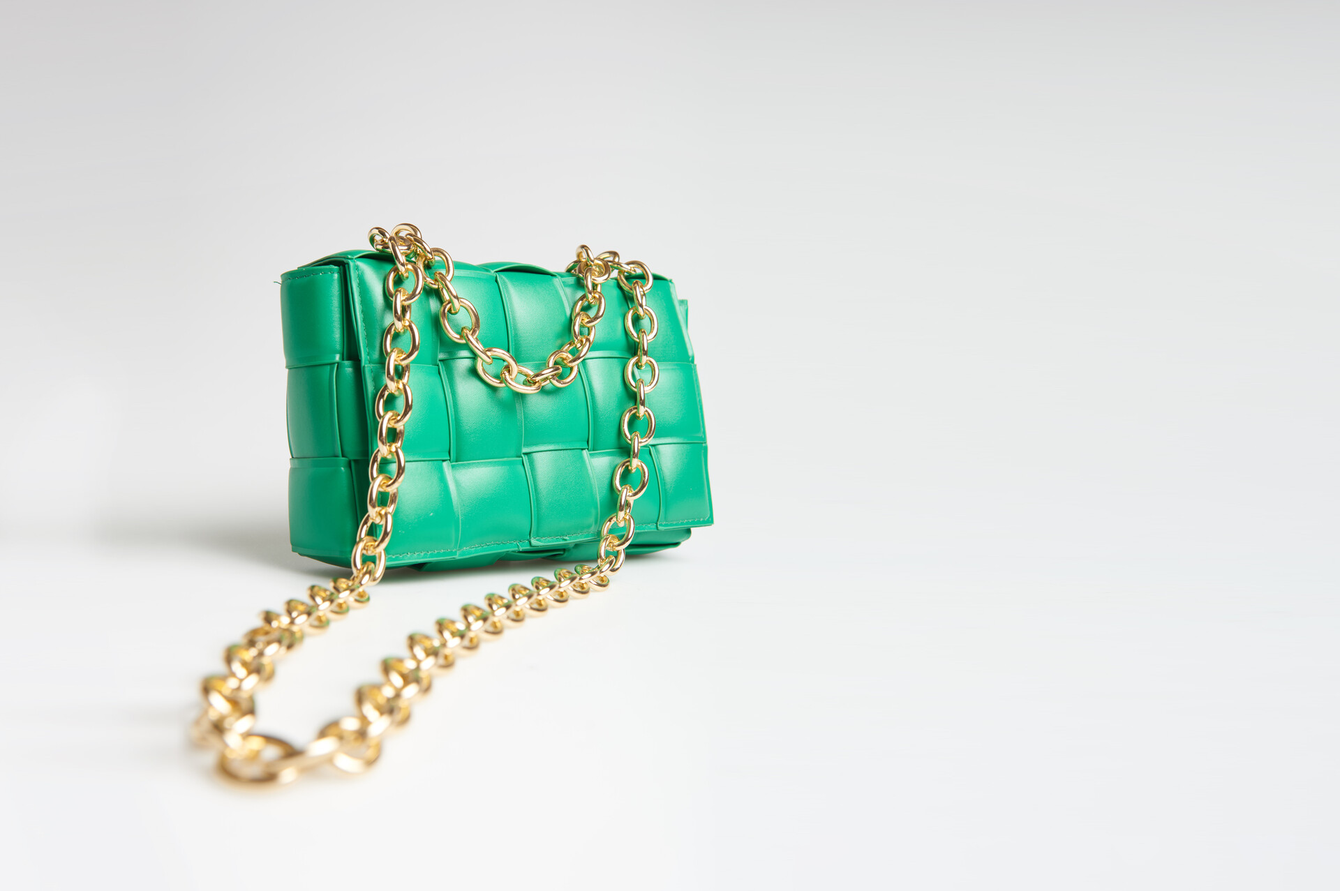 Met deze tas geef jij jouw basic outfit direct een kleurrijke upgrade! De tas wordt gekenmerkt door de groene kleur en de gevlochten structuur. Daarnaast heeft het item een gouden schouderband met grove schakels. Ook bevat het item een korte band waardoor je het item ook als handtas kan dragen. Daarnaast heeft het item een ritszakje in het grote vak. De tas heeft een afmeting van 15 x 24 cm.