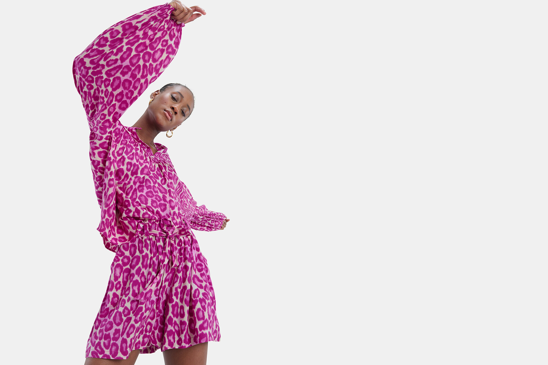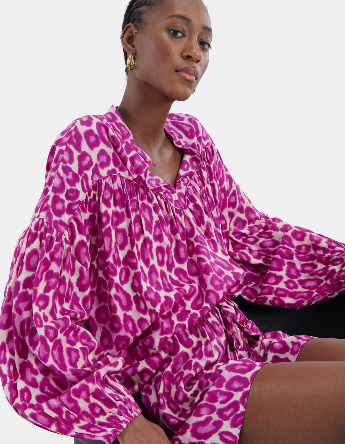 Leopard is my favourite colour! De Thirty Blouse heeft lange mouwen, een regular fit en een v-hals, maar is met het boordknoopje dicht te dragen. Het item wordt gekenmerkt door de roze all-over leopard print en is leuk als set te combineren met de bijpassende short of met een lichte pantalon. Het model heeft een lengte van 175 cm en draagt maat S. Het item heeft een totale lengte van 66 cm bij maat S.
