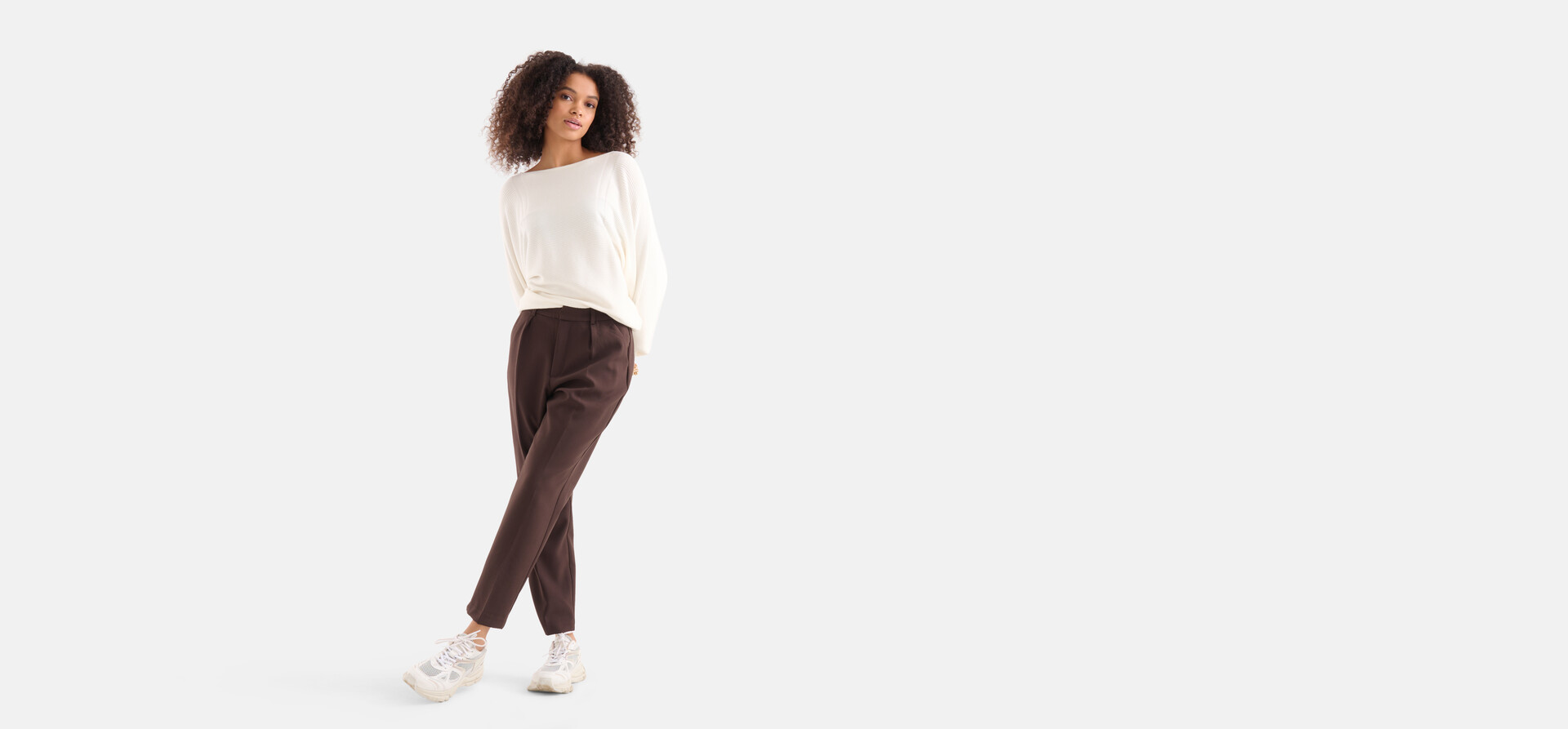 De trend van dit moment: power suits! De Straight Fit Pantalon heeft een hoge taille, een slim fit, een knoop- en ritssluiting, steekzakken en twee paspelzakken op de achterzijde. Het item wordt gekenmerkt door de donkerbruine kleur. Verder heeft de pantalon een enkellengte, waardoor het stoer staat met een chunky sneaker. Het is gemaakt van polyester, viscose en elastaan, hierdoor is het sterk van kwaliteit, vormvast, rekt de stof mee en draagt het comfortabel. Combineer het samen met een wijdvallende trui en een stoere sneaker en je bent ready to go! Het model heeft een lengte van 173 cm en draagt maat S. Het artikel heeft een binnenbeenlengte van 68 cm bij maat S.