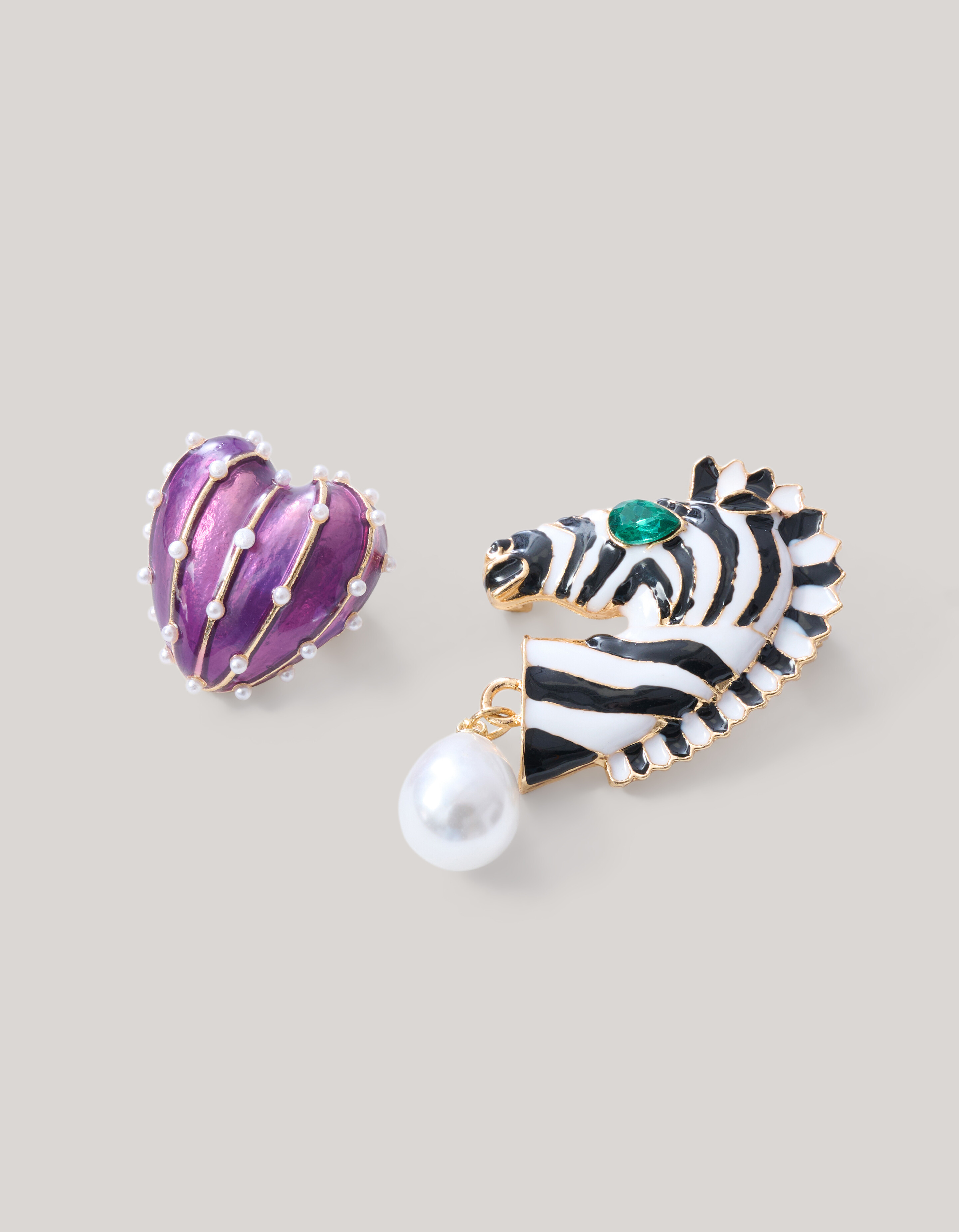 Let your outfit shine! De Broche Set wordt gekenmerkt door de de zebra met een parel en het roze hart. Via de veiligheidsspeld op de achterzijde kan je het artikel vastmaken aan elk kledingstuk. The perfect finishing touch for any outfit!