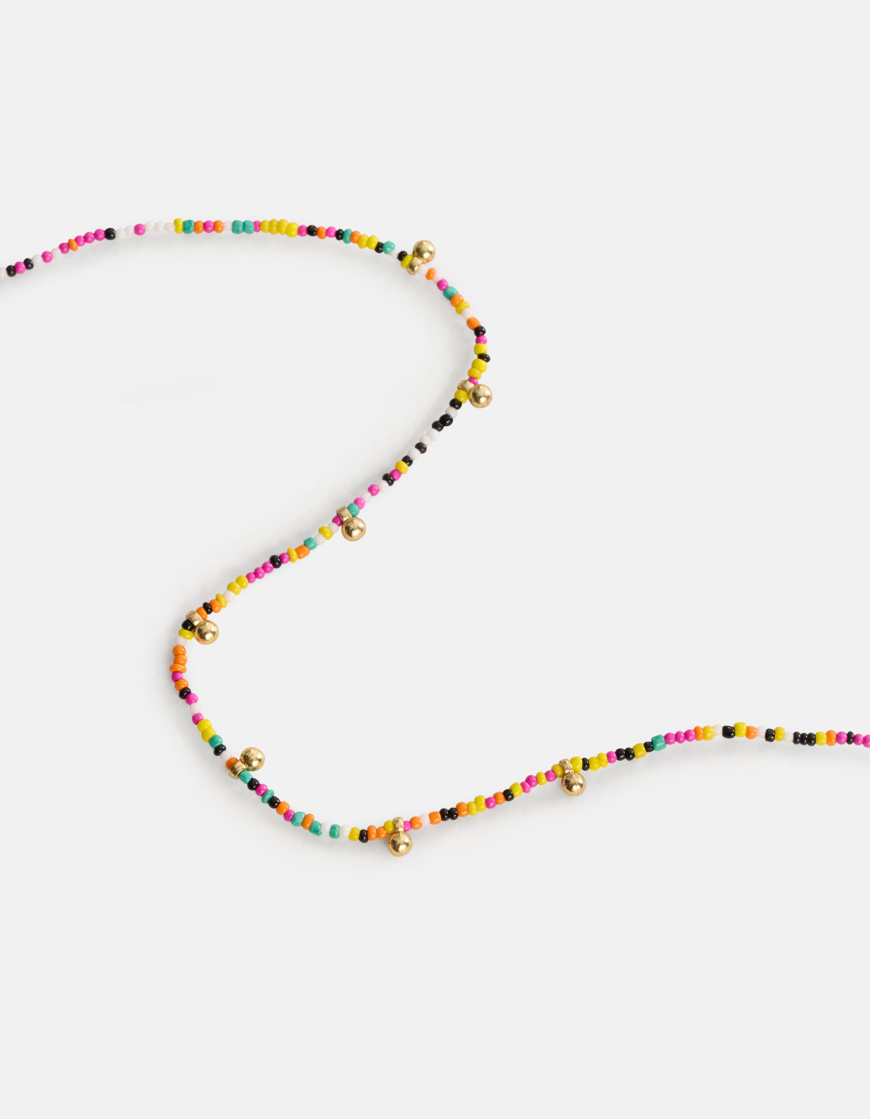 Musthave! De Gekleurde Kralen Ketting wordt gekenmerkt door een gouden ketting met een all-over kralen design. De kralen hebben verschillende kleuren met daartussen nog een paar gouden bedels. Door middel van een haak sluiting kan de ketting makkelijk open- en dicht gemaakt worden. Combineer het samen met de bijpassende armand voor een complete set!