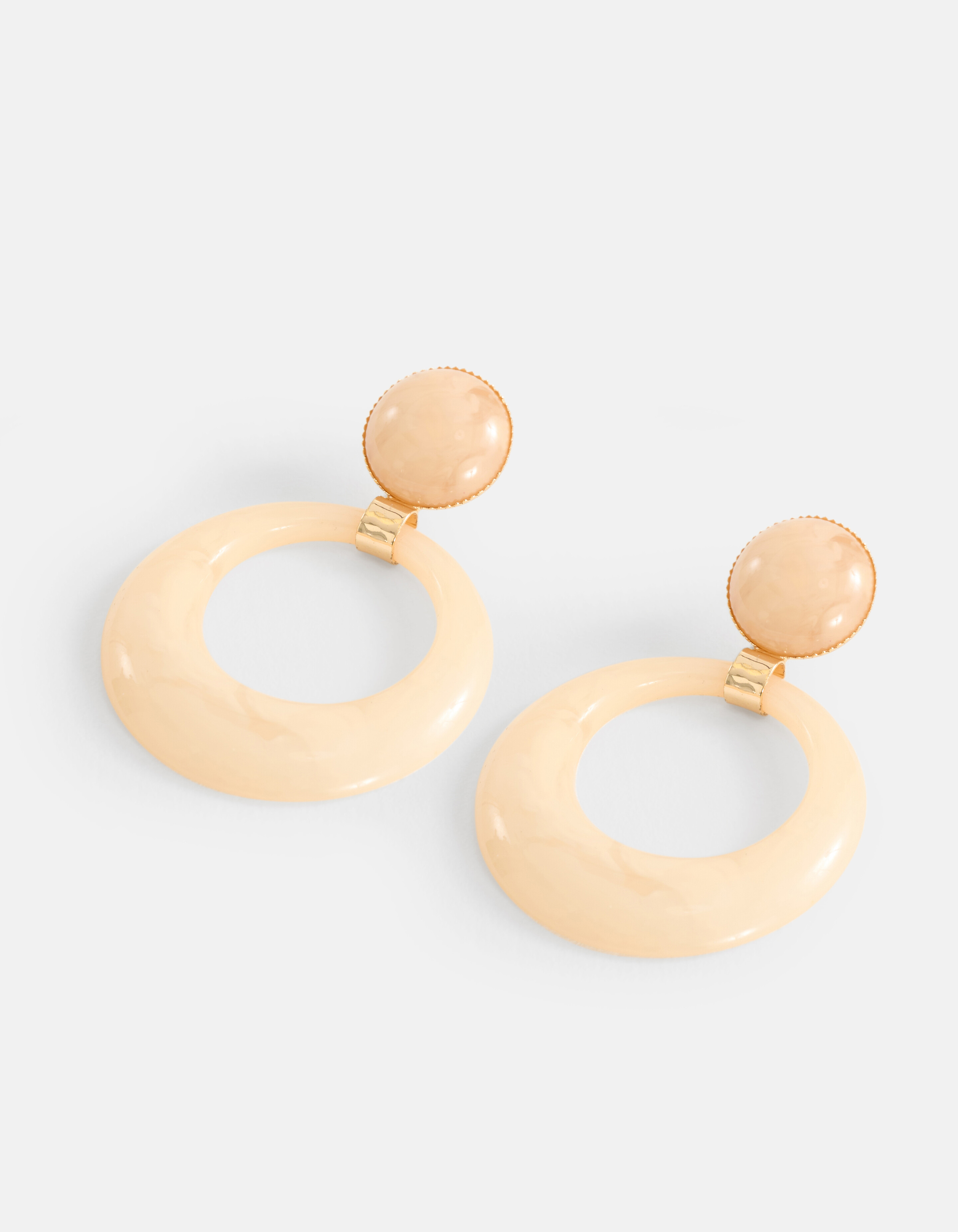 Dedicated to all sophisticated style icons! De Ronde Oorbellen maken je outfit helemaal compleet. Het item wordt gekenmerkt door de ronde vorm met een ronde hanger eronder. De oorbellen hebben een beige kleur met gouden details. Verder heeft het een kegelsluiting, zodat het veilig op zijn plek blijft zitten. Combineer het samen met andere accessoires voor een complete look!