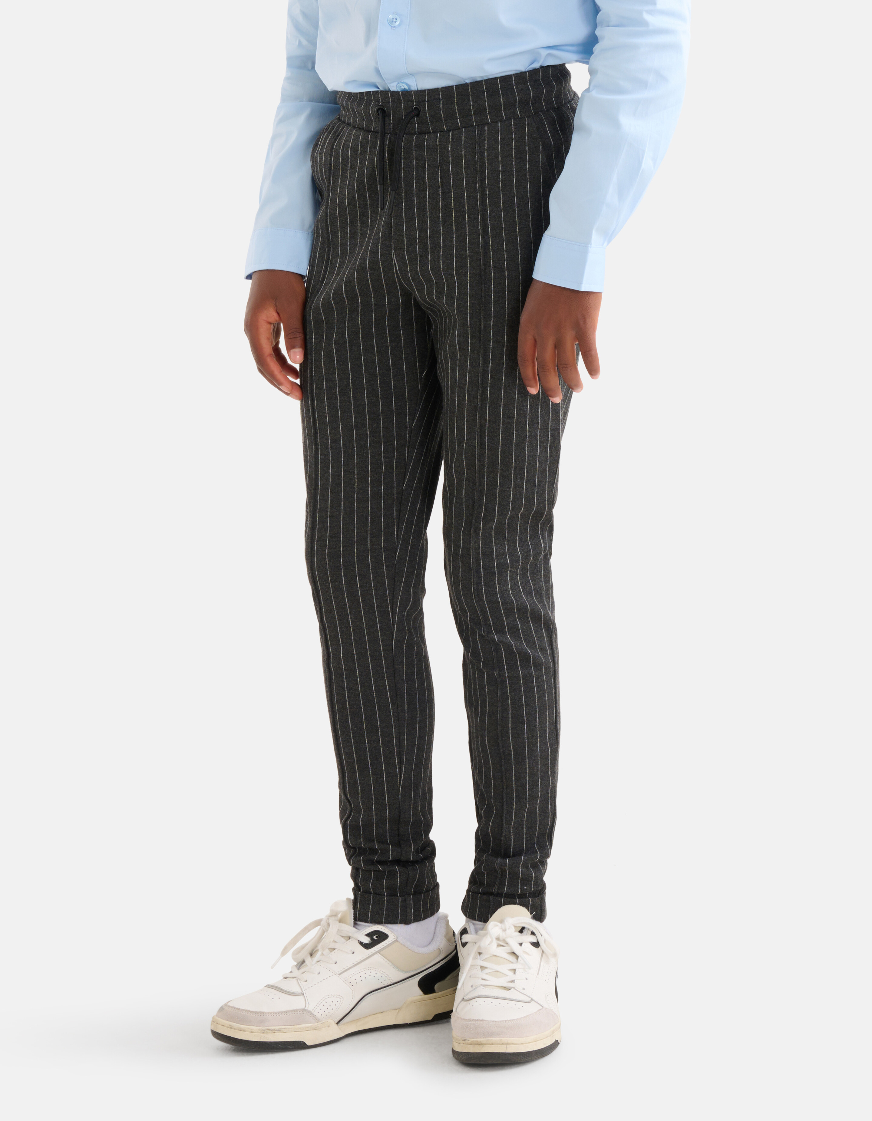 Comfort meets style! De Pinstripe Broek heeft een middelhoge taille, een stretch stof, een pintuck aan de voorzijde, insteekzakken, een regular fit en een elastieke band met een aansnoerkoord. Het item wordt gekenmerkt door de donkergrijze kleur met een all-over pinstripe print. Verder heeft de broek omgeslagen broekspijpen voor een stoer effect. De broek is gemaakt van polyester, viscose en elastaan. Door deze samenstelling is het sterk van kwaliteit, vormvast en comfortabel. Draag het samen met een heavy basis t-shirt en een overshirt voor een gelaagde look!