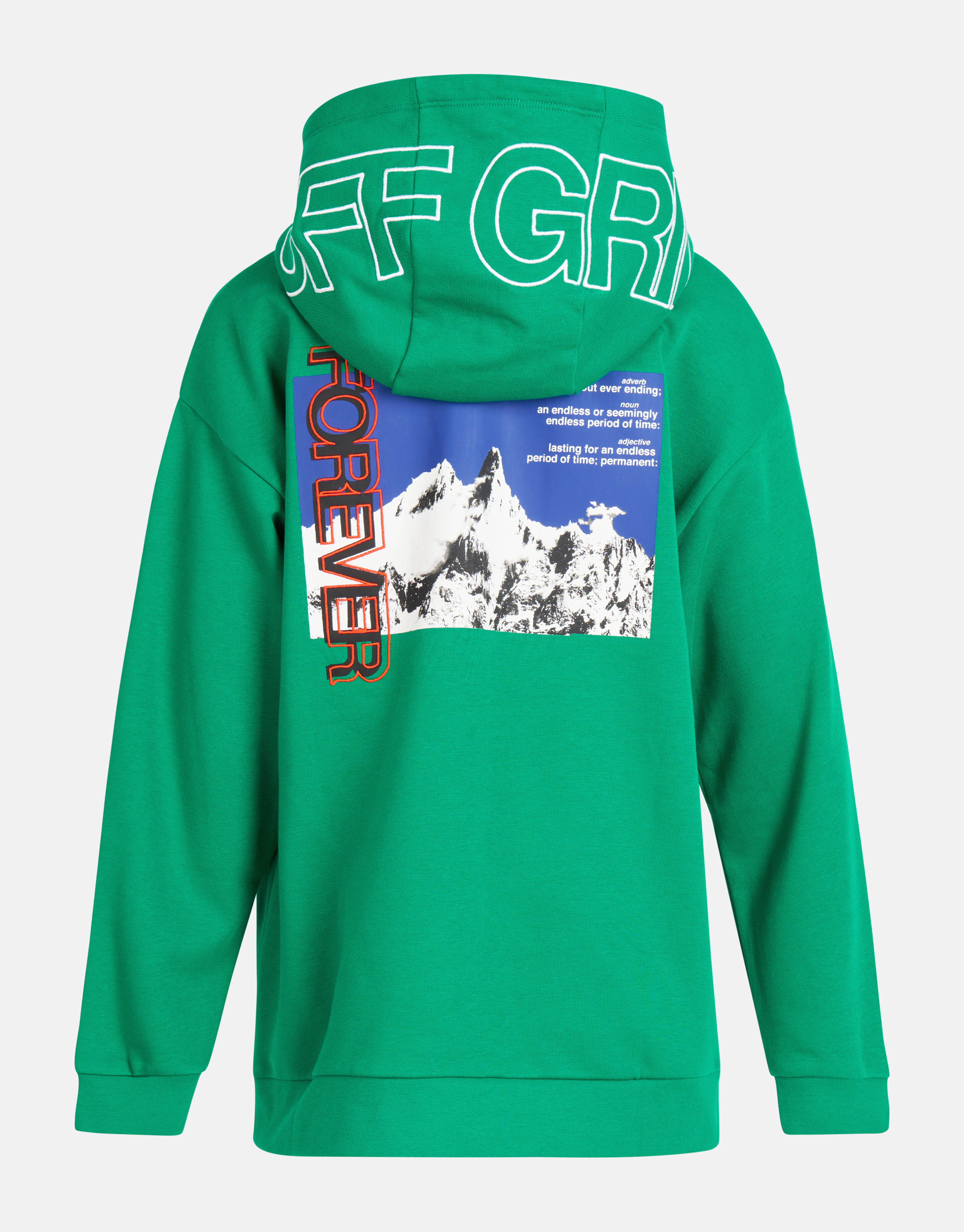 Nature-inspired fashion for outdoor enthusiasts! De Artwork Hoodie heeft lange mouwen, een capuchon, een low-stretch stof, insteekzakken en een relaxed fit. Het item wordt gekenmerkt door de trendy groene kleur met een photo print artwork en borduursels op de achterzijde. Verder heeft de capuchon de geborduurde tekst ''off the grid'' met een oranje Shoeby sparkle logo voor een stoer effect! Door de brushed binnenkant is de hoodie warm en zacht van stof. Combineer het samen met cargo broek voor een avontuurlijke look!