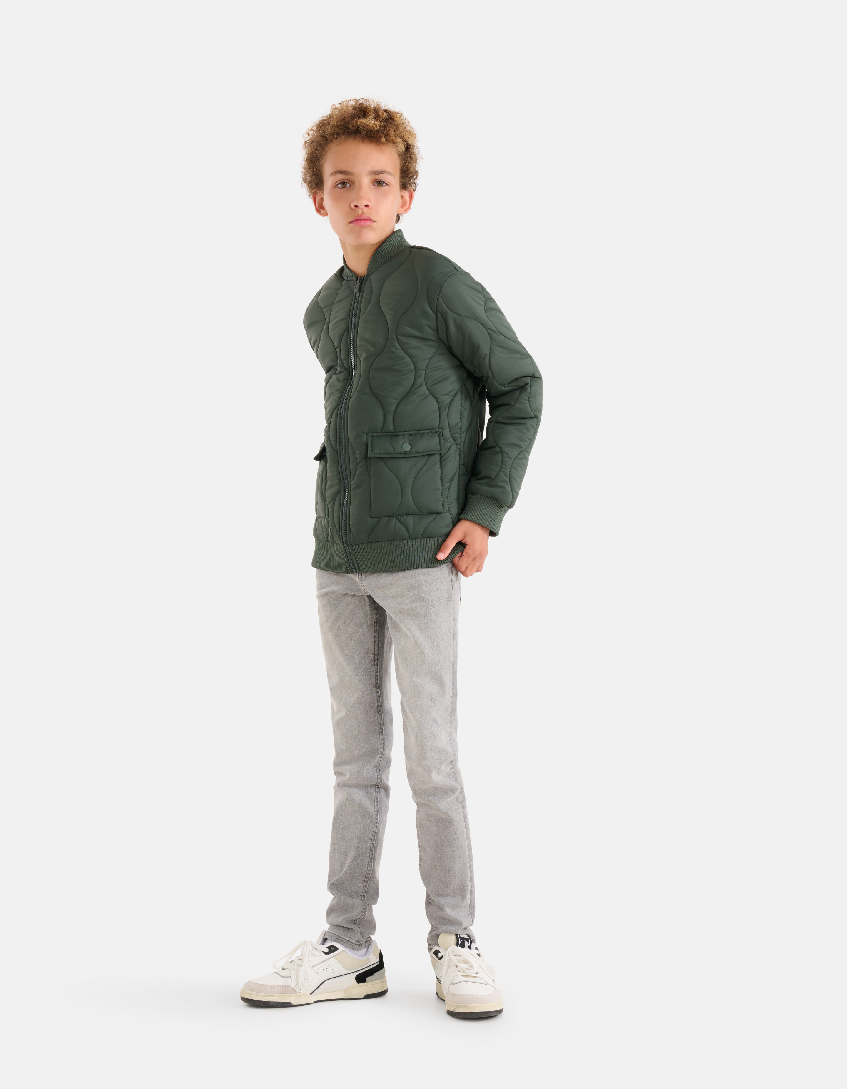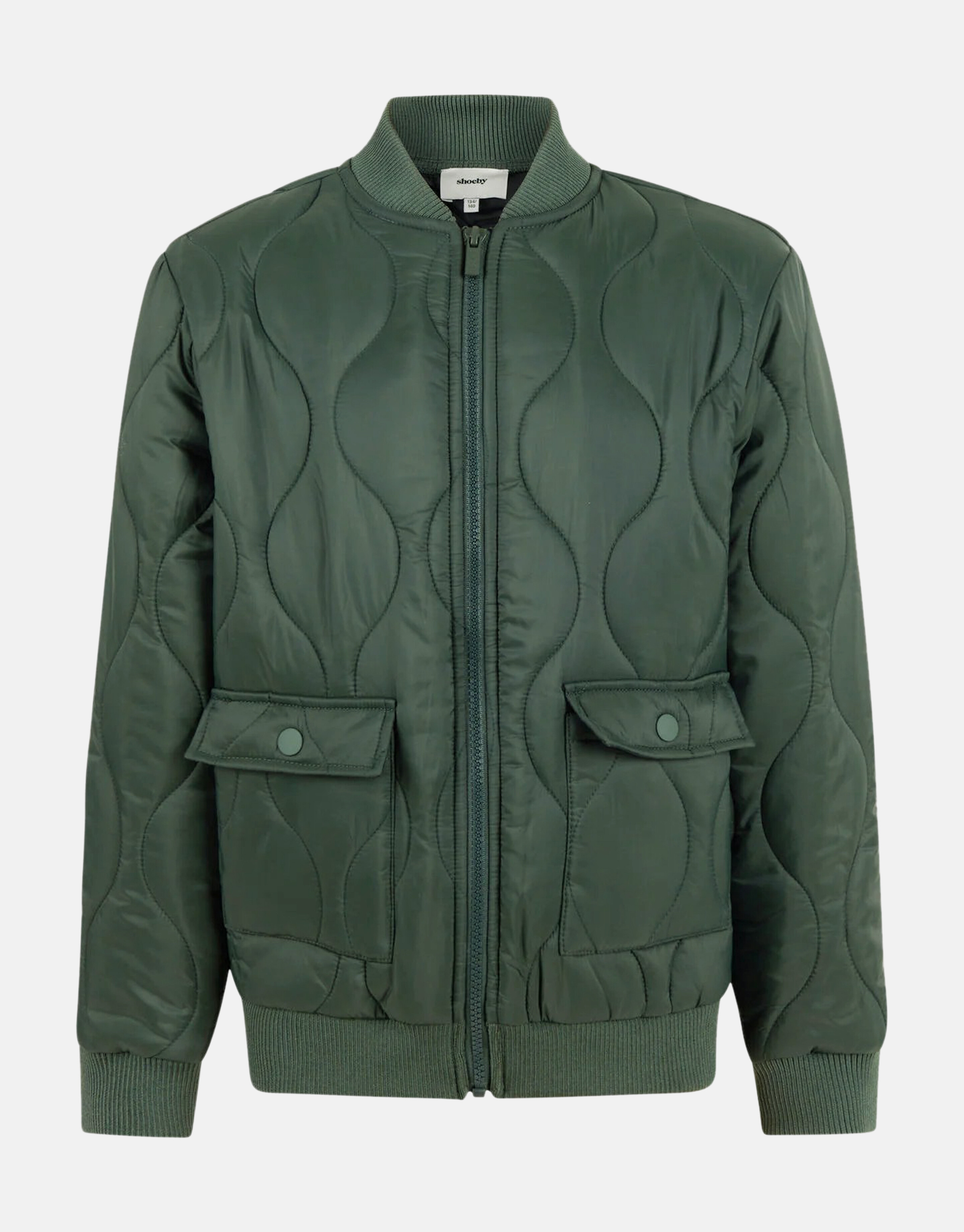 Will keep me warm! De Wavy Padded Jack heeft lange mouwen, een hoge hals, een ritssluiting en een regular fit. Het item wordt gekenmerkt door de donkergroene kleur, de gewatteerde stof en de klepzakken op de voorzijde. In de stof zit er een wavy patroon verwerkt. Verder heeft het jack nog aan de onderzijde, bij de mouwen en langs de hals nog een rib cuff, hierdoor krijgt het jack een stoerder effect. Combineer het samen met een statement t-shirt en een lichte denim jeans voor een casual look!
