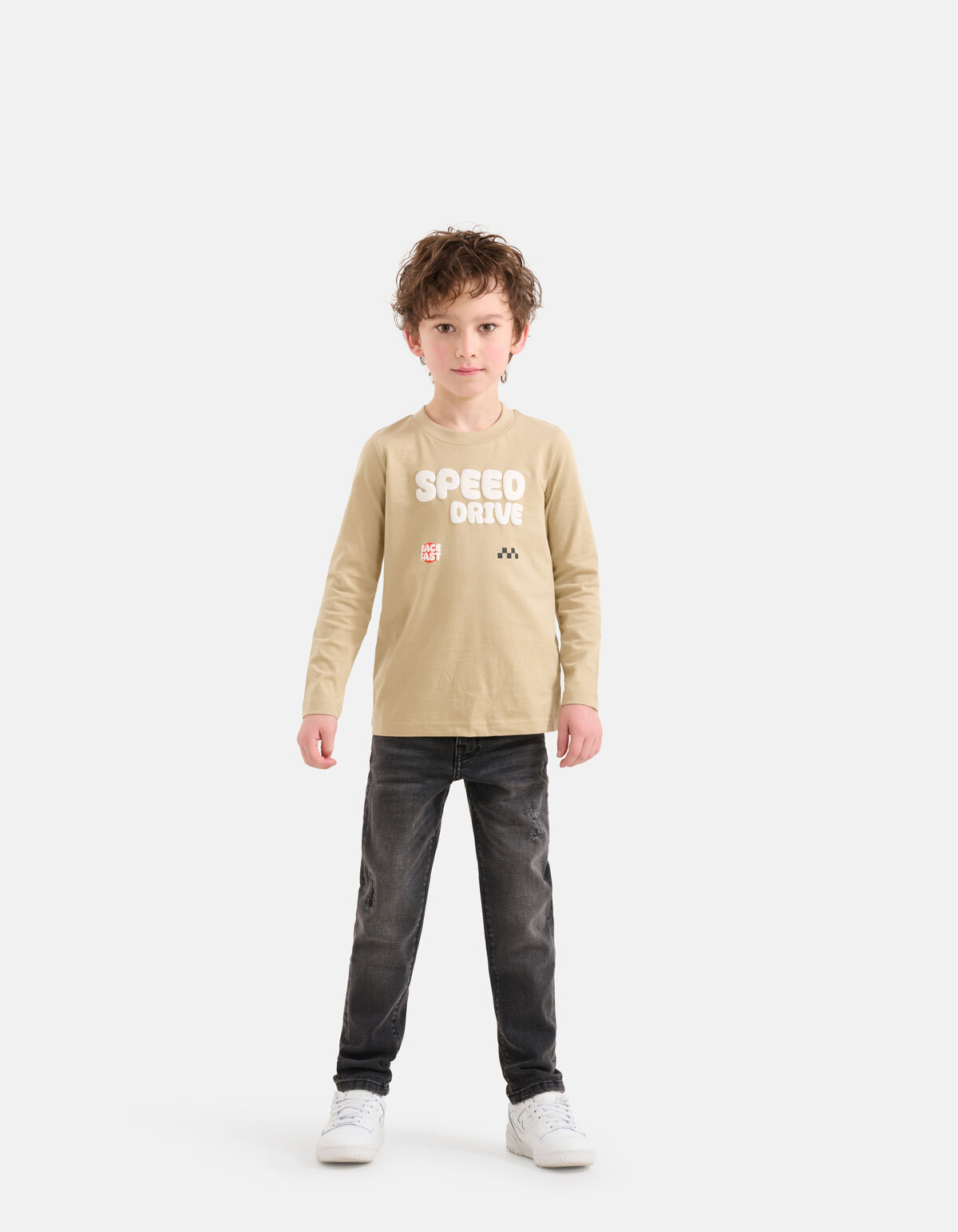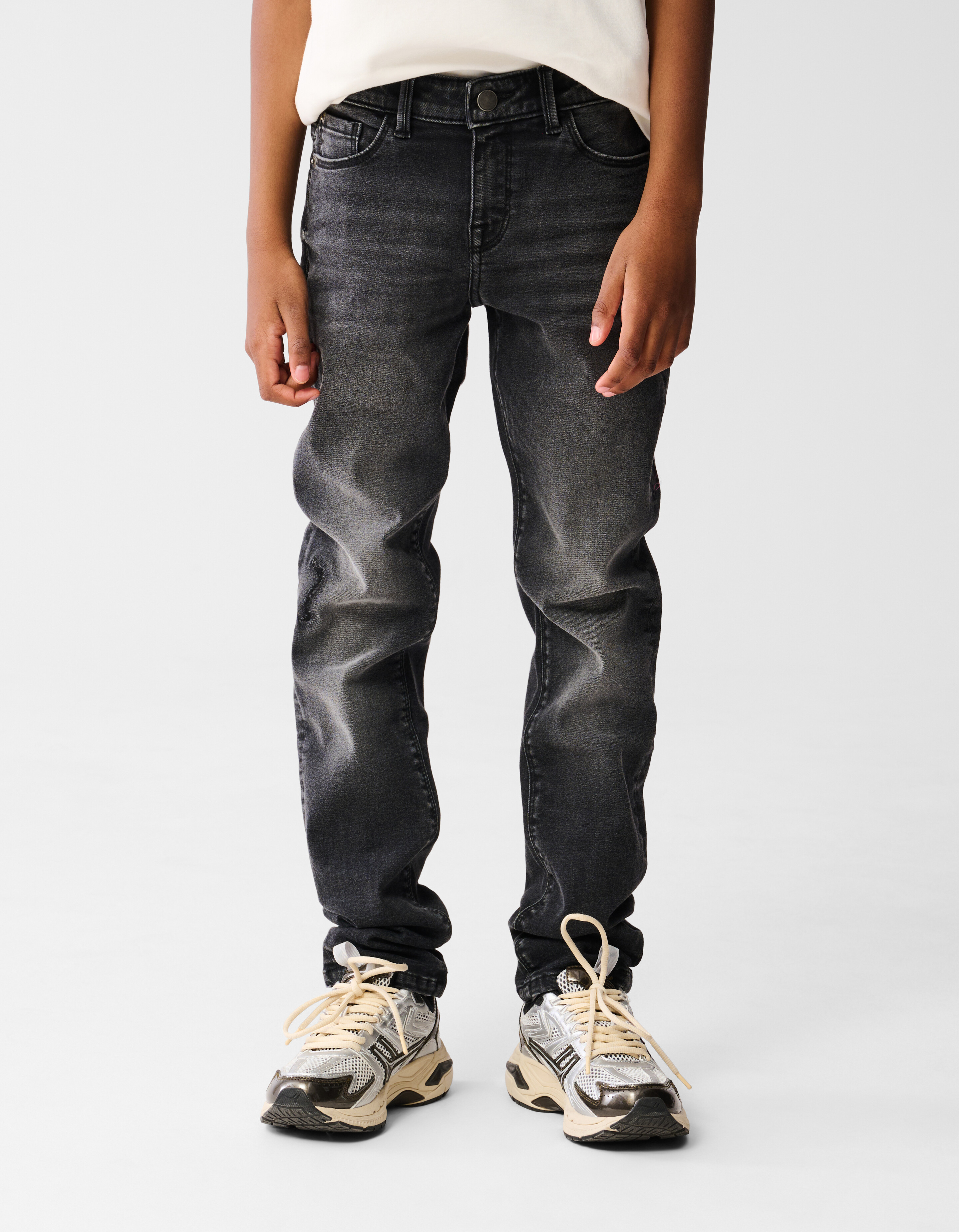 When in doubt, wear denim! De Regular Fit Jeans heeft een middelhoge taille, een 5-pocket model, een verstelbare tailleband, een regular fit met een slim leg en een knoop-en ritssluiting. Het item wordt gekenmerkt door een washed zwarte kleur met ripped en repair details op de broek. Verder vallen de broekspijpen wat rechter uit en heb je wat meer ruimte op de heup en de bovenbeen. Het is gemaakt van katoen en elastaan. Door deze samenstelling is de jeans sterk van kwaliteit, rekt het subtiel mee en draagt het comfortabel. Combineer het artikel samen met een hoodie en sneakers voor een sportieve look.