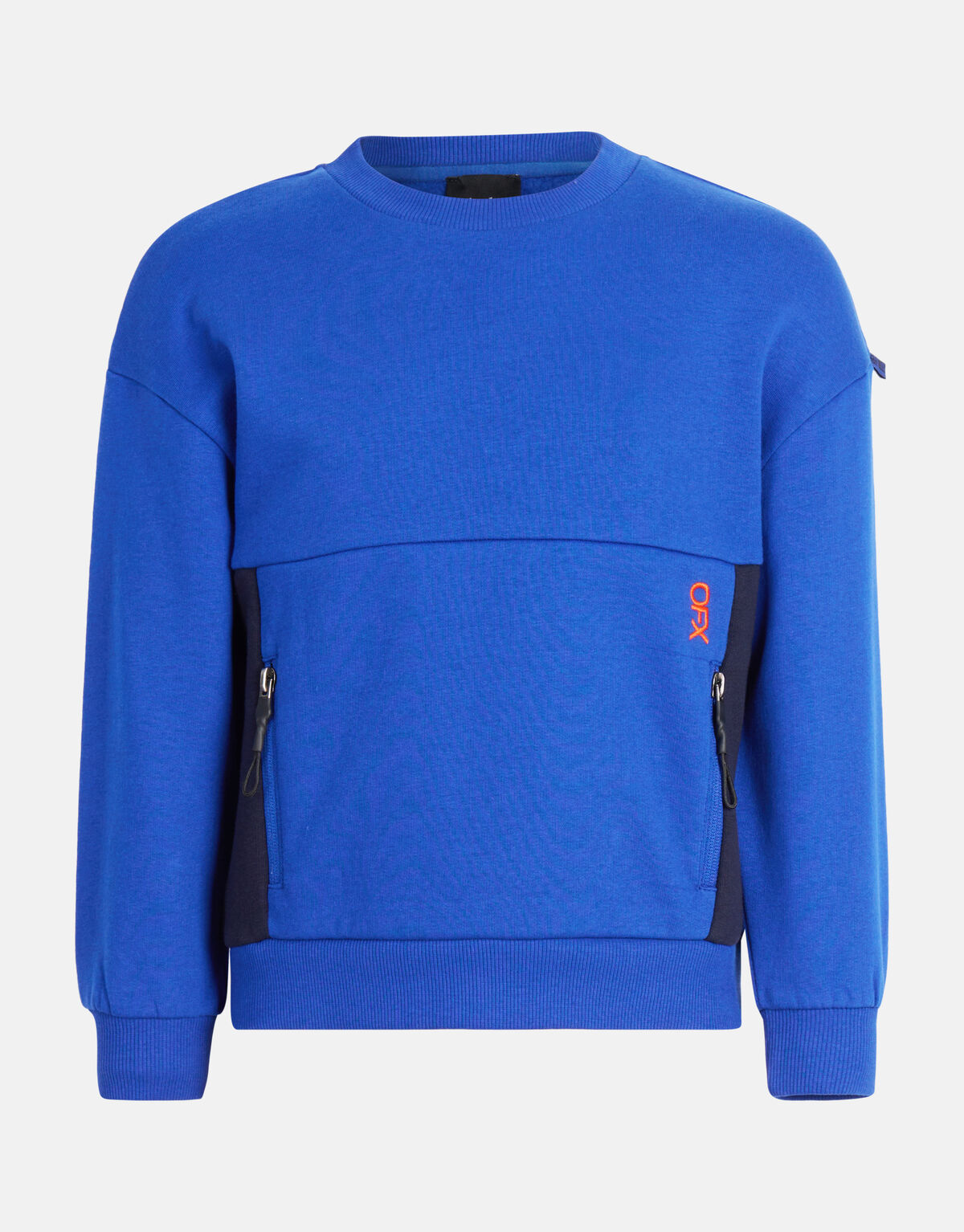 Gear up for the great outdoors! De Zipper Sweater heeft lange mouwen, een hoge ronde hals, een low-stretch stof en een relaxed fit. Het item wordt gekenmerkt door de blauwe kleur met stoere ritsen bij de insteekzak. Verder heeft de sweater oranje borduursels op de voor-en achterzijde. Een leuk detail zijn de zwarte stof detail en de versnijdingen op de voor-en achterzijde voor een sportieve look. Het is gemaakt van katoen en polyester. Door deze samenstelling is het sterk van kwaliteit, vormvast en comfortabel. Draag het samen met jouw favoriete denim en je bent good to go!