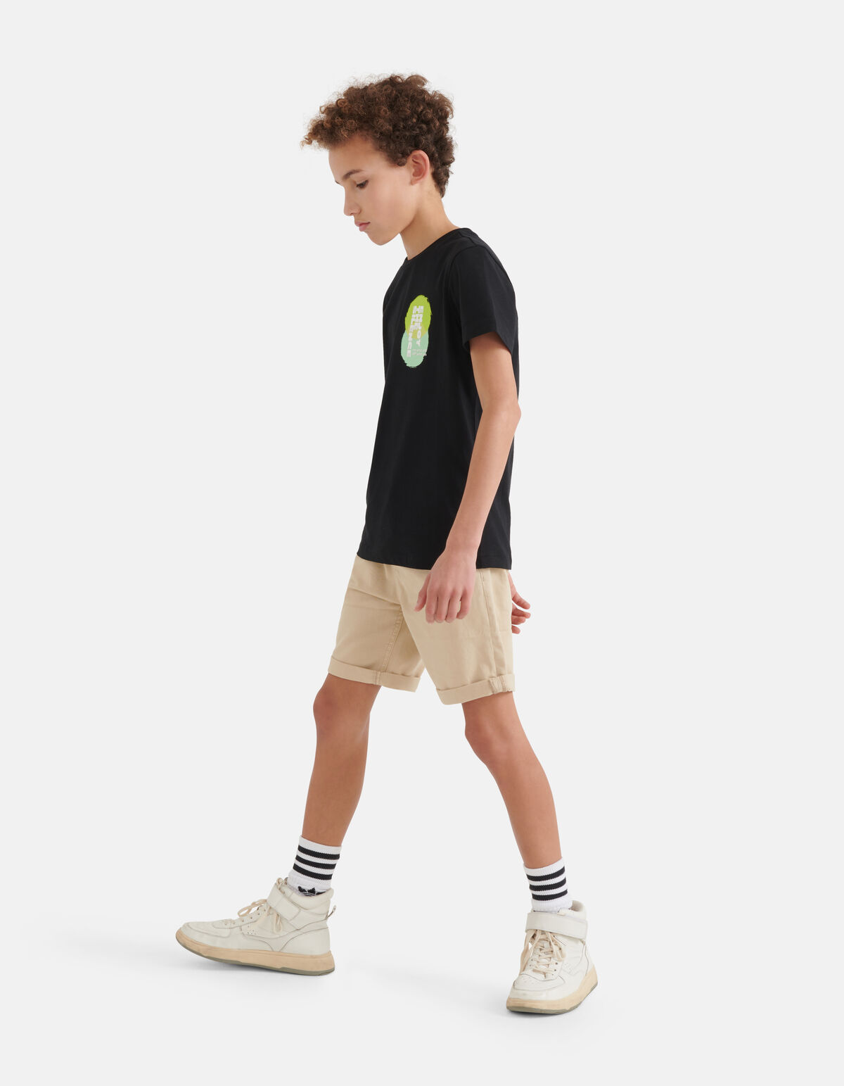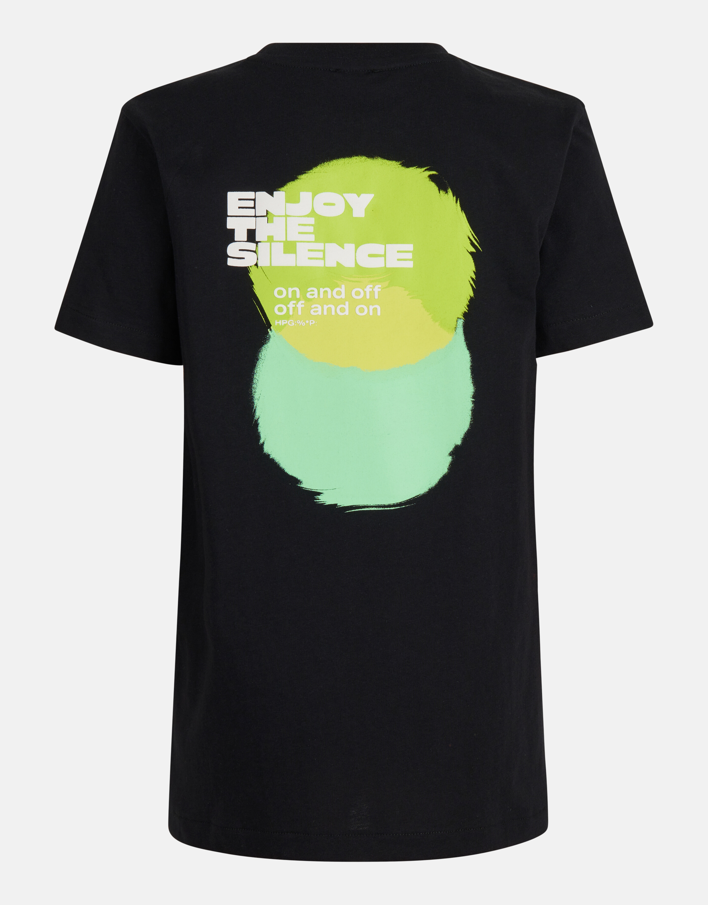 Print it! Het Artwork T-shirt heeft een korte mouw, een hoge hals en een regular fit. Het item wordt gekenmerkt door de zwarte kleur met een high density print en een gekleurde pigment print op de voor-en achterzijde. Het t-shirt is gemaakt van 100% katoen, hierdoor is het sterk van kwaliteit en draagt het comfortabel. Maak de look compleet met een short en je bent ready to go!