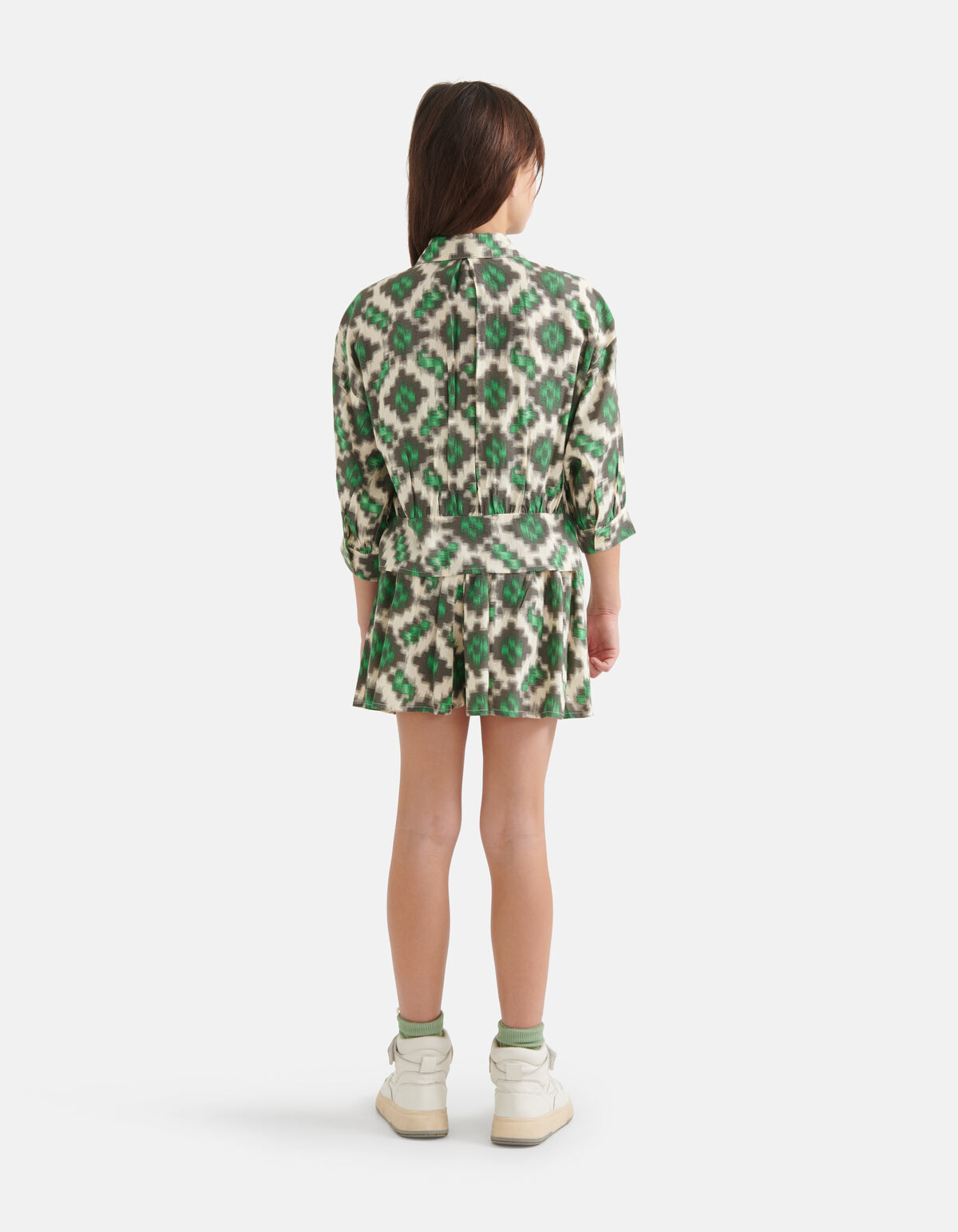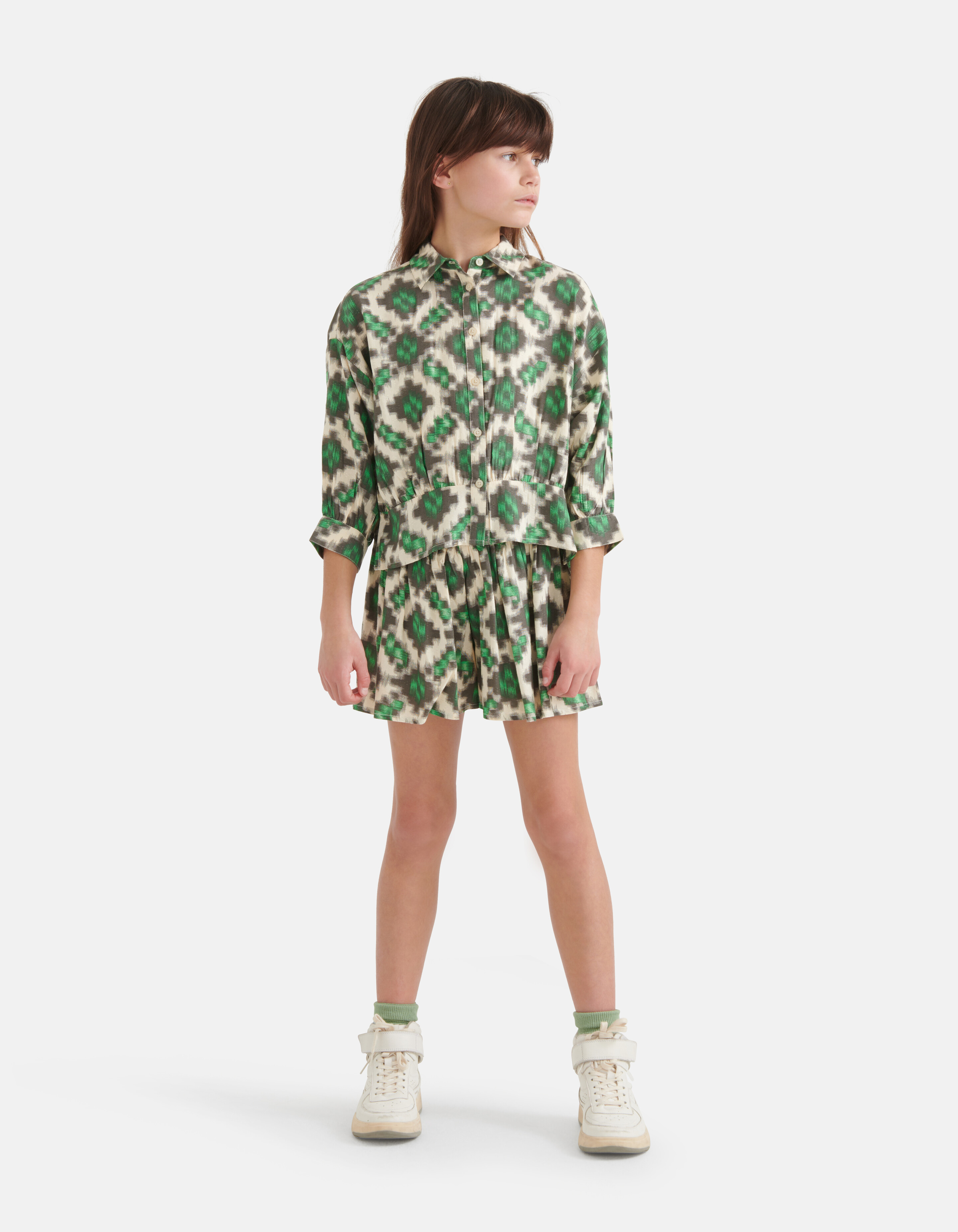 Musthave! De Grafische Blouse heeft driekwart mouw, een kraag, een knoopsluiting en een regular fit. Het item wordt gekenmerkt door de gebroken witte kleur met een grafische all-over print in de kleur groen en grijs. Een leuk detail is wijdvallende mouw, waardoor het item een speels effect krijgt. Het is gemaakt van 100% viscose, daardoor is het kleurvast en draagt het comfortabel. Maak de look compleet met het bijpassende shortje of draag het op een wide leg jeans voor een stijlvolle look!