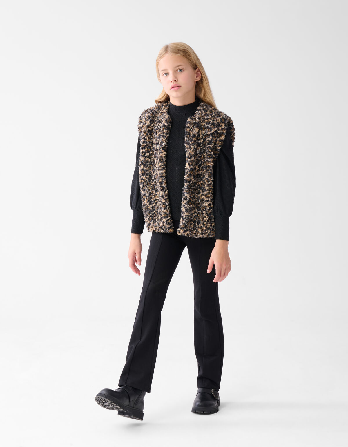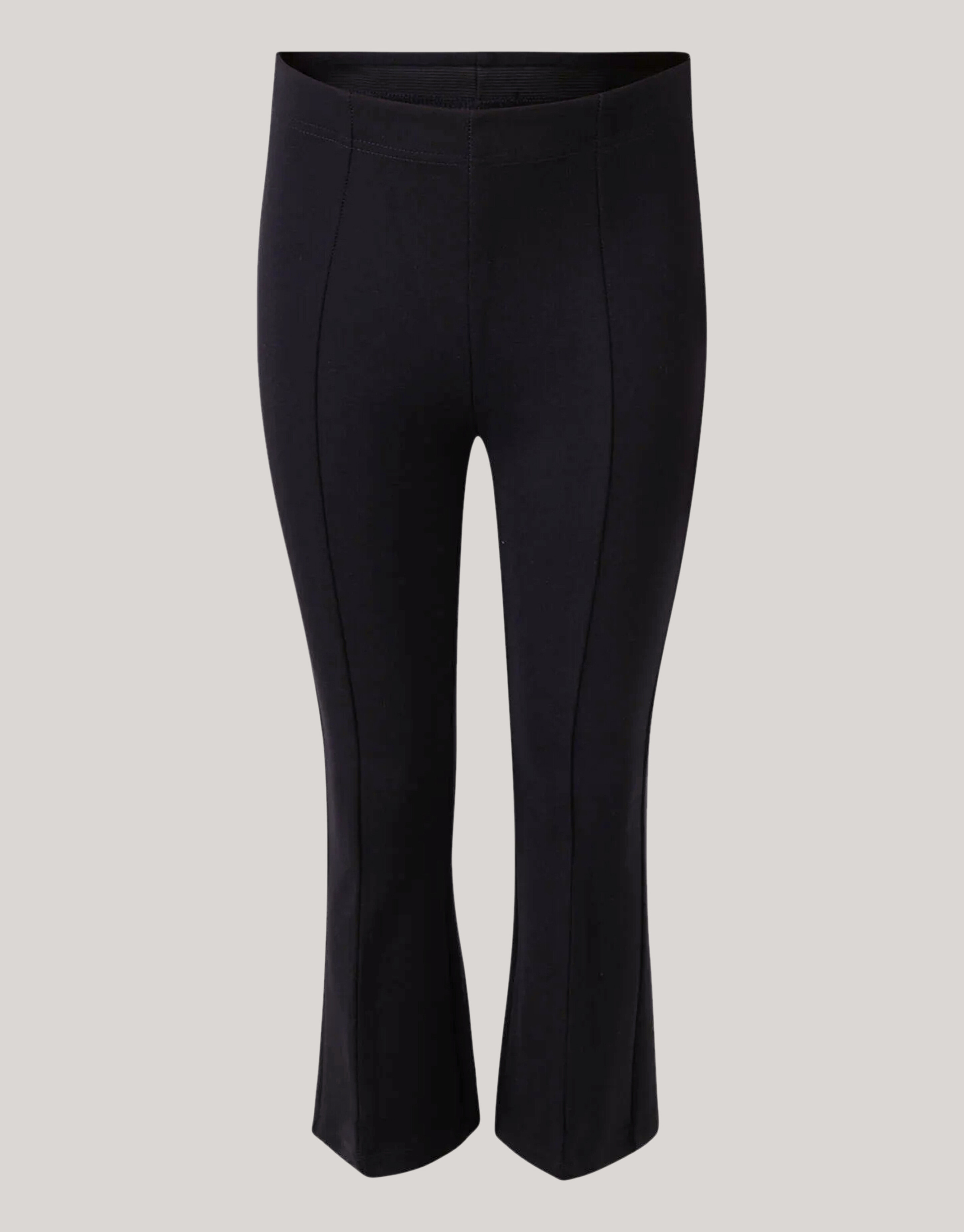 Musthave! De stretch legging heeft een hoge taille, een elastieke band en een aansluitende fit met een flared model. Het item wordt gekenmerkt door de zwarte kleur en de fijne stretch stof. Verder heeft de legging een stevige stof en een vouwnaad op de voorzijde. Het is gemaakt van viscose, polyester en elastaan. Door deze samenstelling is de broek kleurvast, vormvast, rekbaar, sterk van kwaliteit en comfortabel. Maak de look af met een gebreide trui, chunky sneakers en een lichtroze muts.