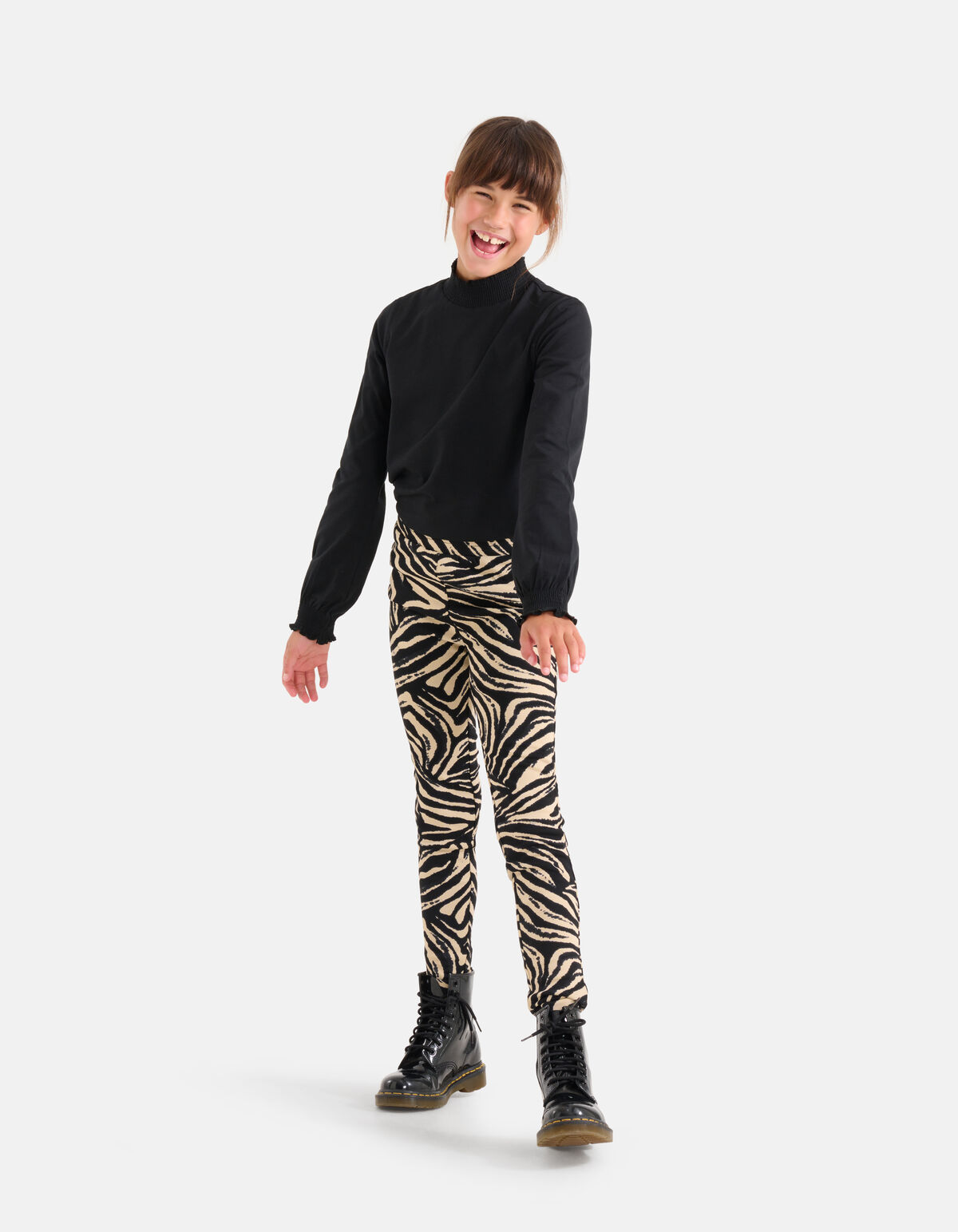 Unleash your wild side! De Zebra Print Legging heeft een hoge taille, een stretch stof, een aansluitend model en een elastieke band in de taille. Het item wordt gekenmerkt door de ribstof, de zwarte kleur met een all-over zebra print in de kleur gebroken wit. Het is gemaakt van polyester en elastaan. Door deze samenstelling is het sterk van kwaliteit, vormvast, rekbaar en comfortabel. Maak de outfit compleet een zwarte top of een groene gebreide trui en je bent good to go!