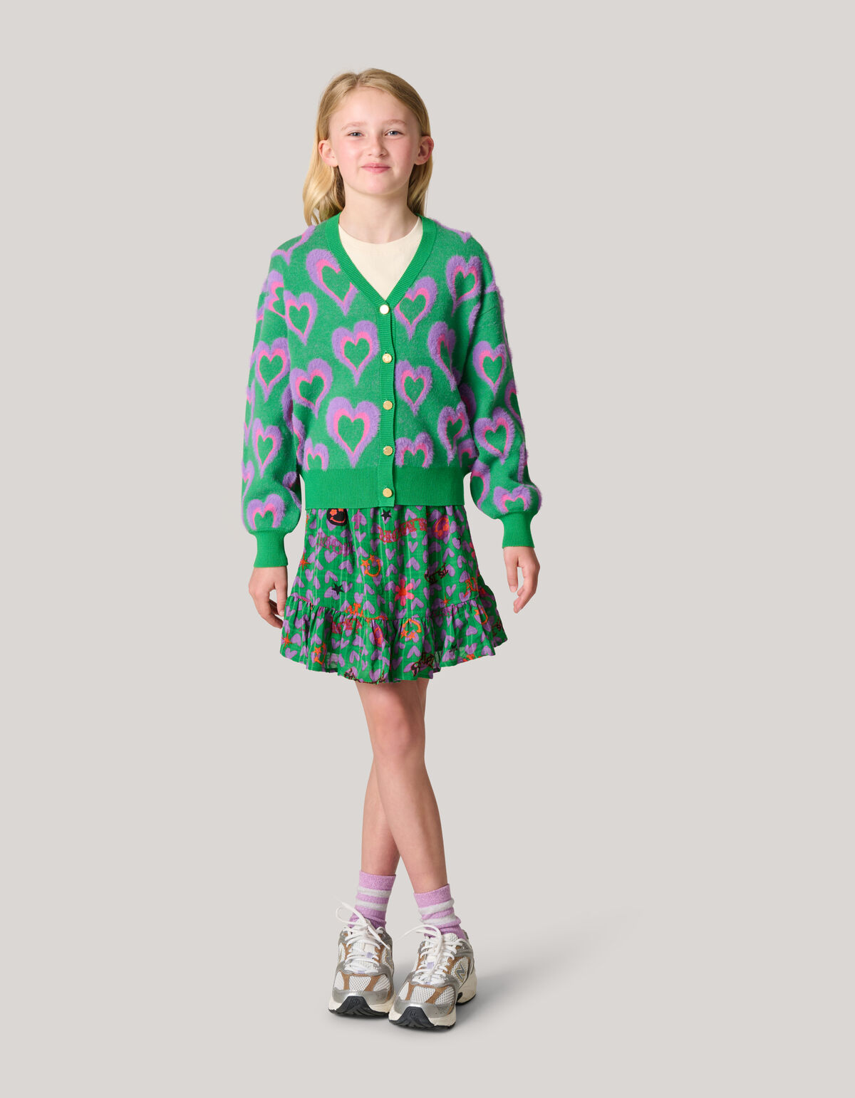 Comfy and stylish! Haal een veelzijdig kledingstuk in huis met de Printed Cardigan Groen. Het vest wordt gekenmerkt door de groene kleur met paars hartjes design. Dit zorgt voor een opvallende look met een speelse touch. Het vest heeft een regular-fit, cropped lengte en lange mouwen. Het heeft een knoopsluiting en v-hals, waardoor het gemakkelijk te dragen is en perfect past bij je favoriete jeans. Of je nu een dagje uit gaat of een ontspannen avondje thuis doorbrengt, dit vest is de ideale aanvulling op je garderobe!