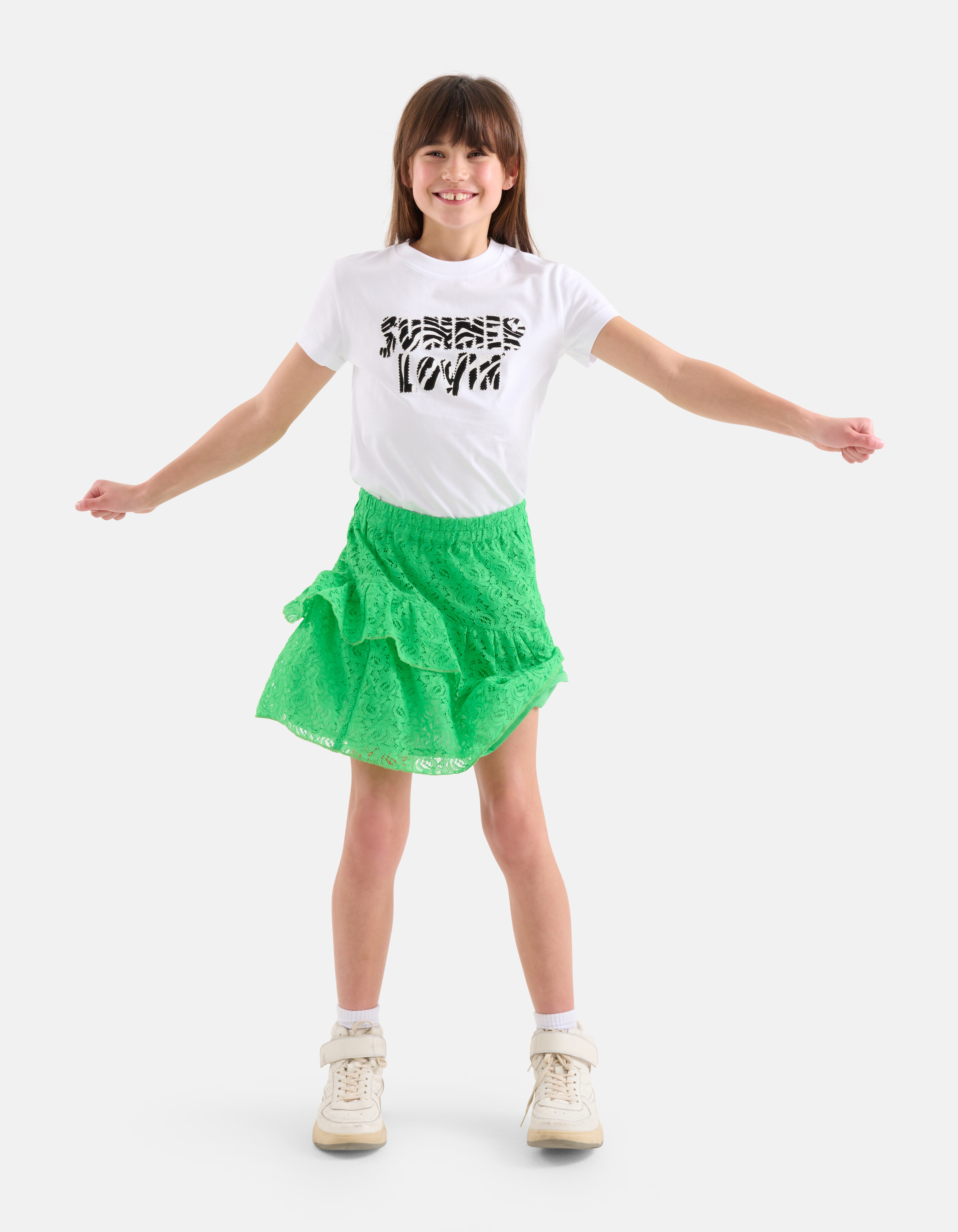 It's all about the details! De Kanten Rok heeft een hoge taille, een wijd uitlopend model en een elastieke band in de taille. Het item wordt gekenmerkt door de trendy kleur met een all-over kanten design. Verder heeft de rok twee lagen en een lining aan de binnenkant, zodat de rok niet doorschijnt. Maak de look compleet met een t-shirt en je bent ready to go!