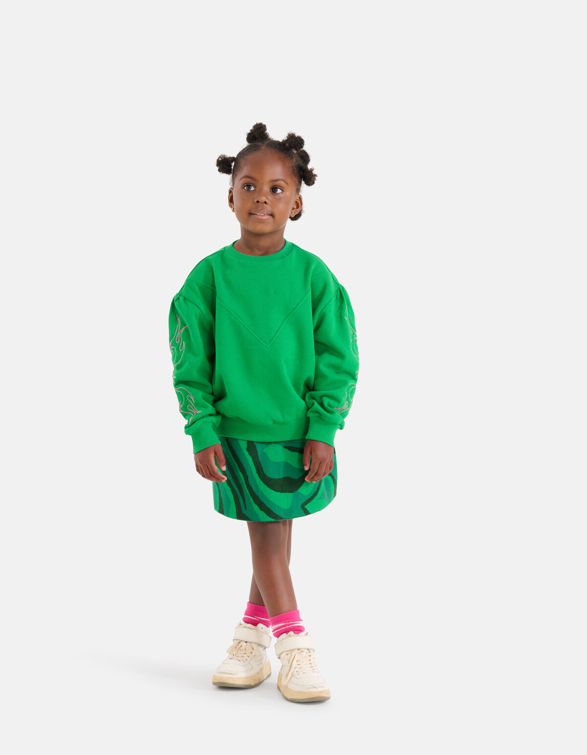 The greener the better! De Printed Rok heeft een hoge taille, een stretch stof, een mini-lengte en een uitlopend model. Het item wordt gekenmerkt door de groene kleur met een all-over print. De print heeft een grafische look met verschillende soorten swirls er doorheen. Verder heeft de rok een stevige gebreide stof. Perfect voor de koudere dagen! Het is gemaakt van polyester, polyamide en viscose. Door deze samenstelling is het sterk van kwaliteit, vormvast, kleurvast en comfortabel. Draag het samen met een groene trui en je bent good to go!