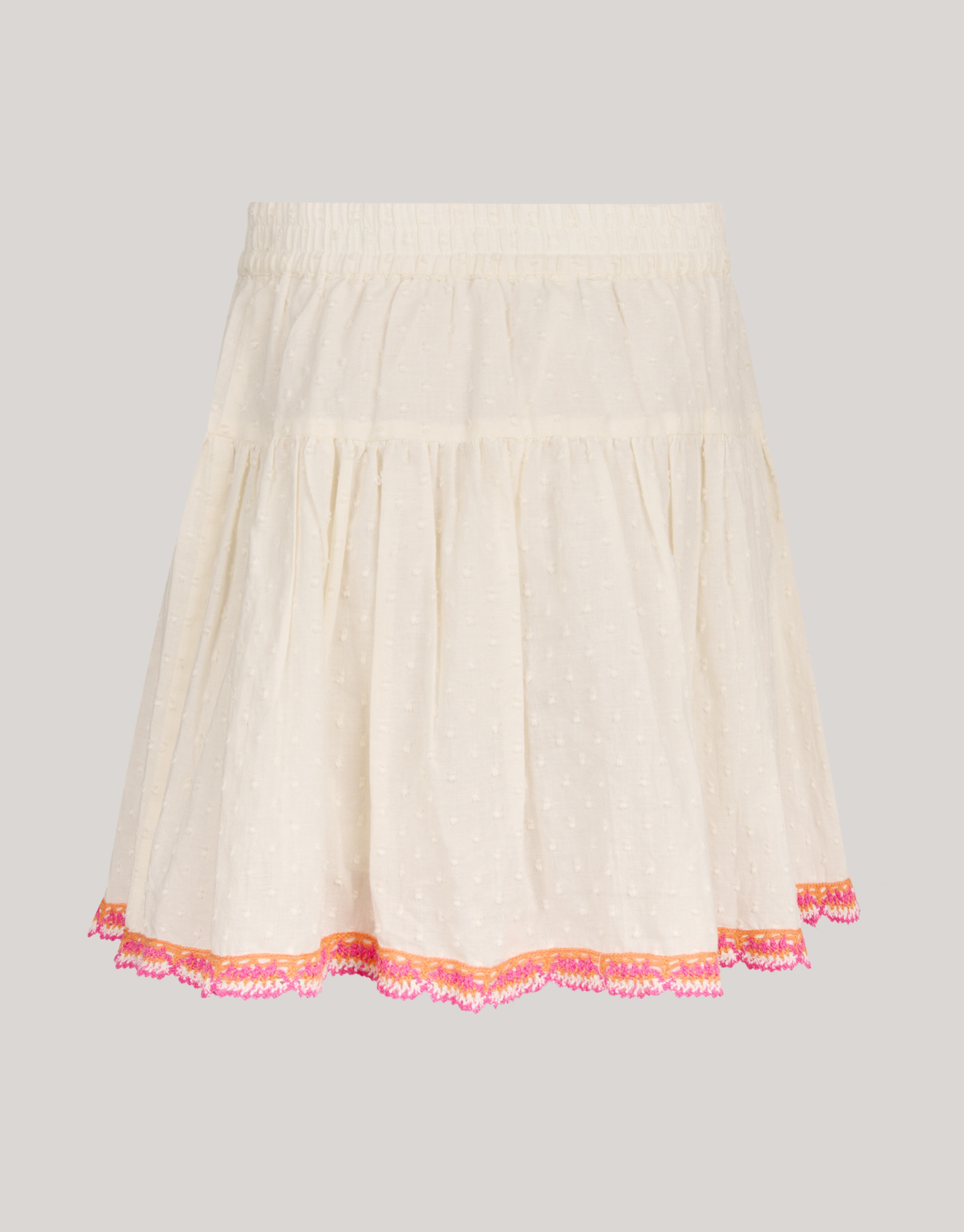 Summer ready! De Tape Rok heeft een hoge taille, een elastische tailleband en een uitlopend model. Het item wordt gekenmerkt door de gebroken witte kleur met een all-over print en een tape detail aan de onderzijde. Het is gemaakt van 100% katoen, hierdoor draagt het comfortabel.