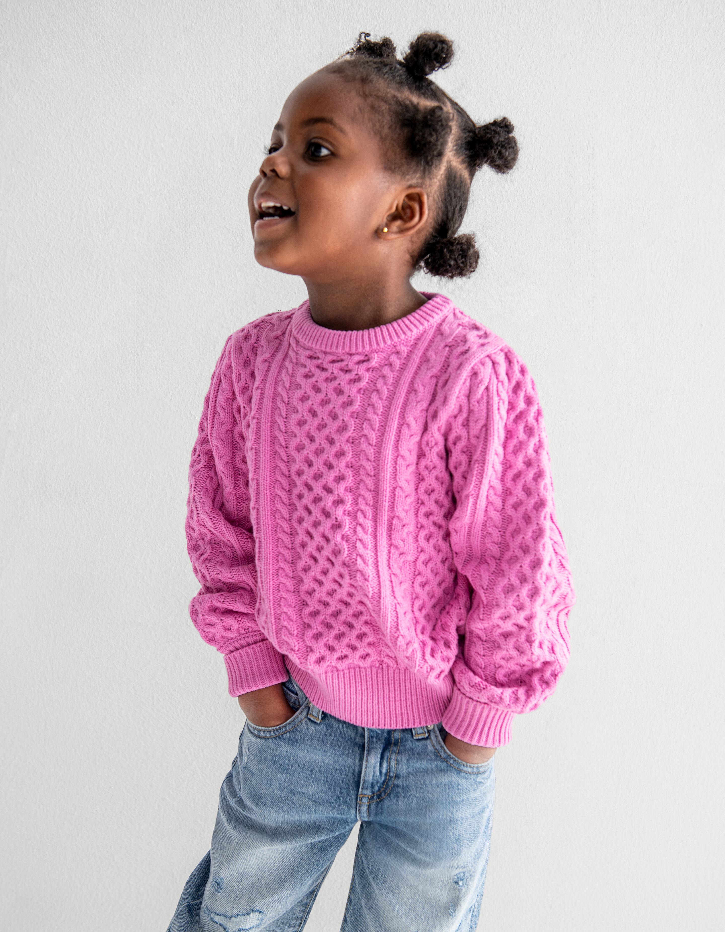 Unleash your personal style with Shoeby's fashion treasures! De Gebreide Kabeltrui heeft lange mouwen, een hoge ronde hals, een fijn breisel, een non-stretch stof en een regular fit. Het item wordt gekenmerkt door de roze kleur met een all-over kabel structuur in de stof verwerkt. De trui is gemaakt van katoen en acryl. Door deze samenstelling is het sterk van kwaliteit, comfortabel en voelt het even warm als wol aan. Maak de outfit compleet met een pinstripe broek en een paar chunky sneakers!