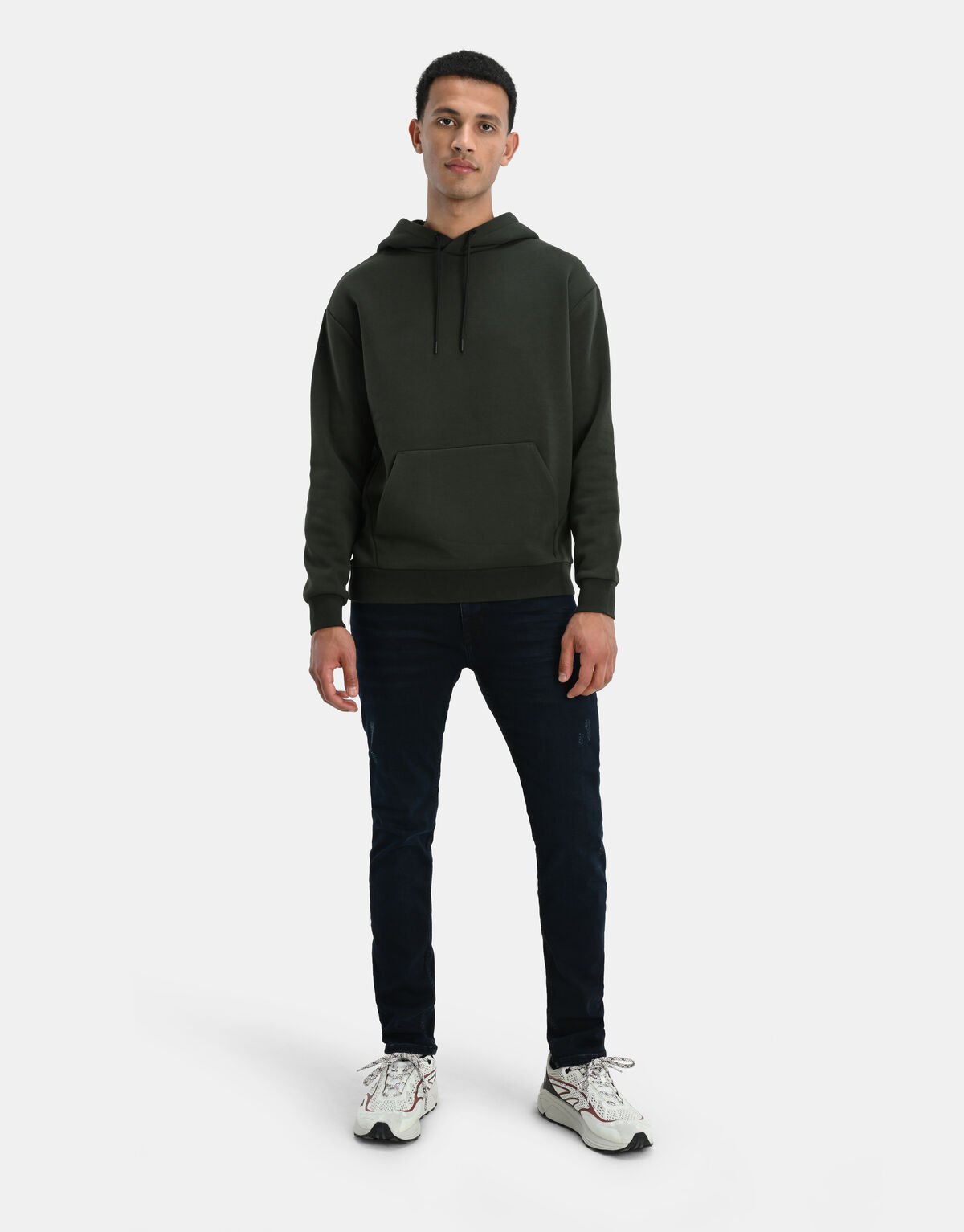 Colors speak all languages! De Slanted Seam Hoodie heeft lange mouwen, een relaxed fit en een capuchon. Het item wordt gekenmerkt door een donkergroene kleur en een buidelzak aan de voorzijde. Verder heeft de hoodie een zachte stof aan de binnenkant. Combineer het samen met een donkere denim jeans en sneakers voor een sportieve look. Het model heeft een lengte van 188 cm en draagt maat M. Het artikel heeft een totale lengte van 72 cm bij maat M.