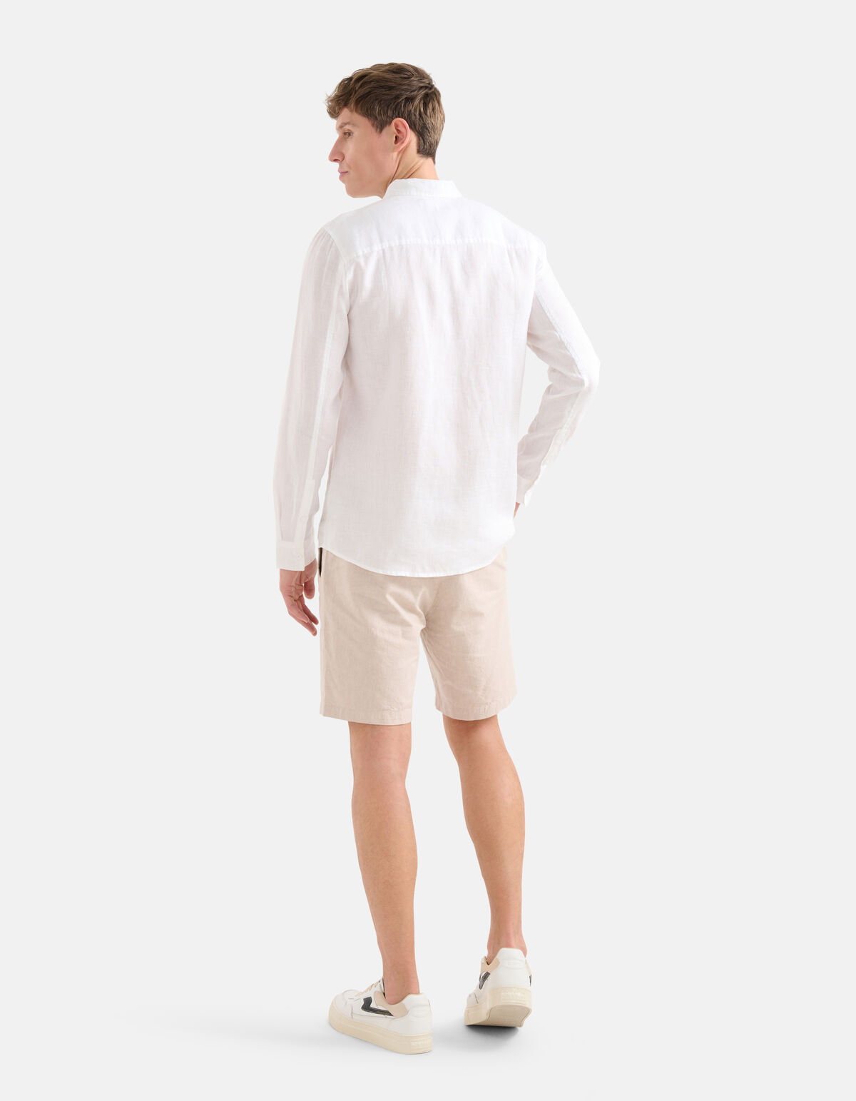 Casual meets stylish! Het Linnen Overhemd heeft lange mouwen, een kraag, een knoopsluiting en een regular fit. Het item wordt gekenmerkt door de witte kleur en de sterke kwaliteit linnen. De stof linnen is grof van structuur, maar is gemaakt van een natuurlijk en luchtige stof. Maak de look compleet met een beige short en een stoere sneaker en je bent good to go! Het model heeft een lengte van 189 cm en draagt maat M. Het artikel heeft een totale lengte van 77,5 cm bij maat M.