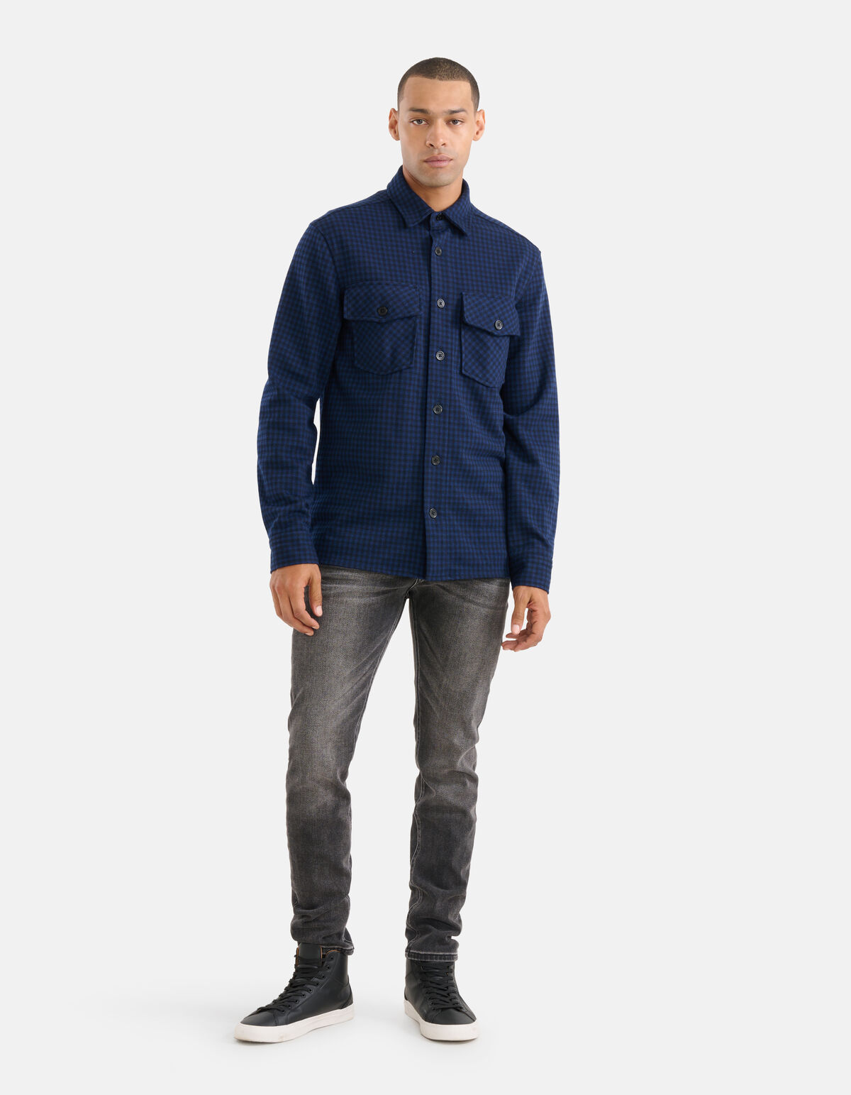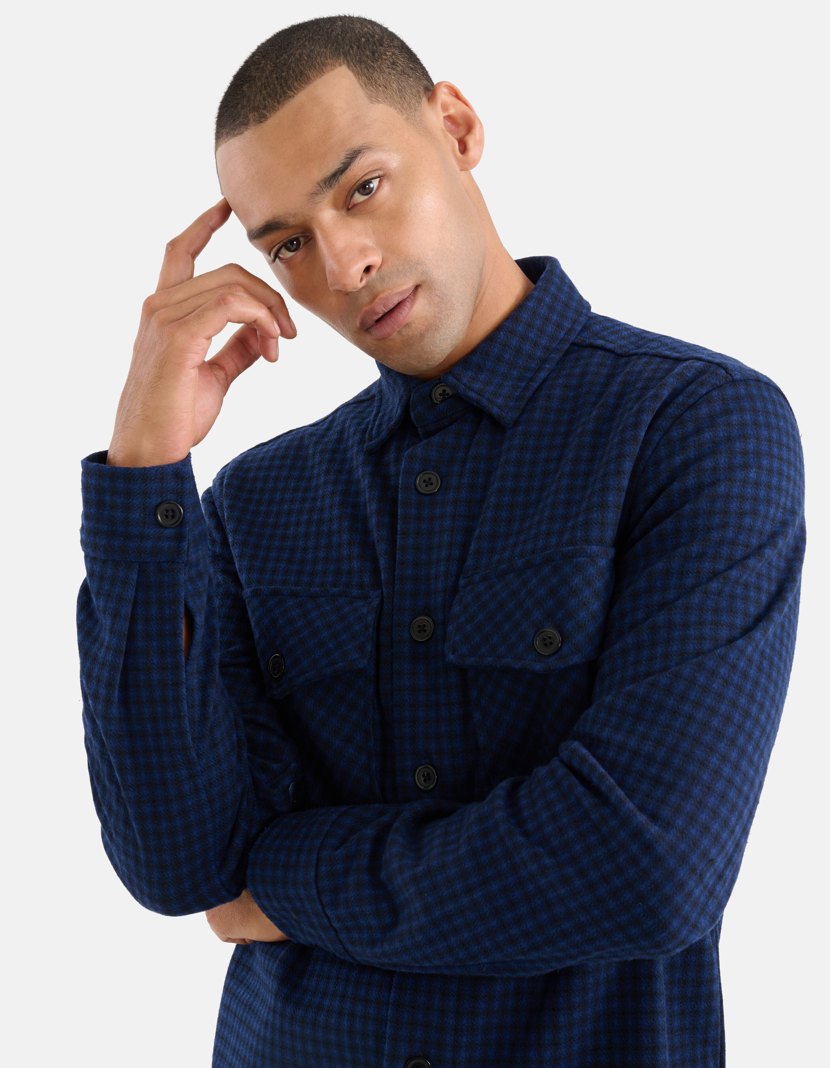 Jouw everyday essential met een urban edge! Het Ruiten Overshirt heeft lange mouwen, een kraag, een knoopsluiting, een stretch stof en een regular fit. Het item wordt gekenmerkt door de donkerblauwe kleur met een all-over ruiten print in de stof verwerkt. Verder heeft het overshirt twee klepzakken op de voorzijde voor een stoer effect. Het is gemaakt van polyester, viscose en elastaan. Door deze samenstelling is het sterk van kwaliteit, vormvast, kleurvast, rekbaar en comfortabel. Draag het samen met een basis shirt en een stoere denim voor een sportieve look! Het model heeft een lengte van 186 cm en draagt maat M. Het artikel heeft een totale lengte van 80,5 cm bij maat M.