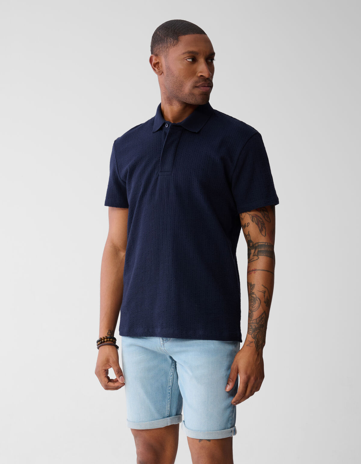 Ontdek deze Structuur Polo Donkerblauw. Deze polo heeft korte mouwen, een button down kraag, een low-stretch stof en een regular fit. Verder wordt de polo gekenmerkt door de donkerblauwe kleur waardoor deze met veel te combineren valt. De polo is gemaakt van 100% katoen waardoor deze comfortabel draagt. Het model heeft een lengte van 185 cm en draagt een maat L. De polo heeft een totale lengte van 70,5 cm bij een maat L.