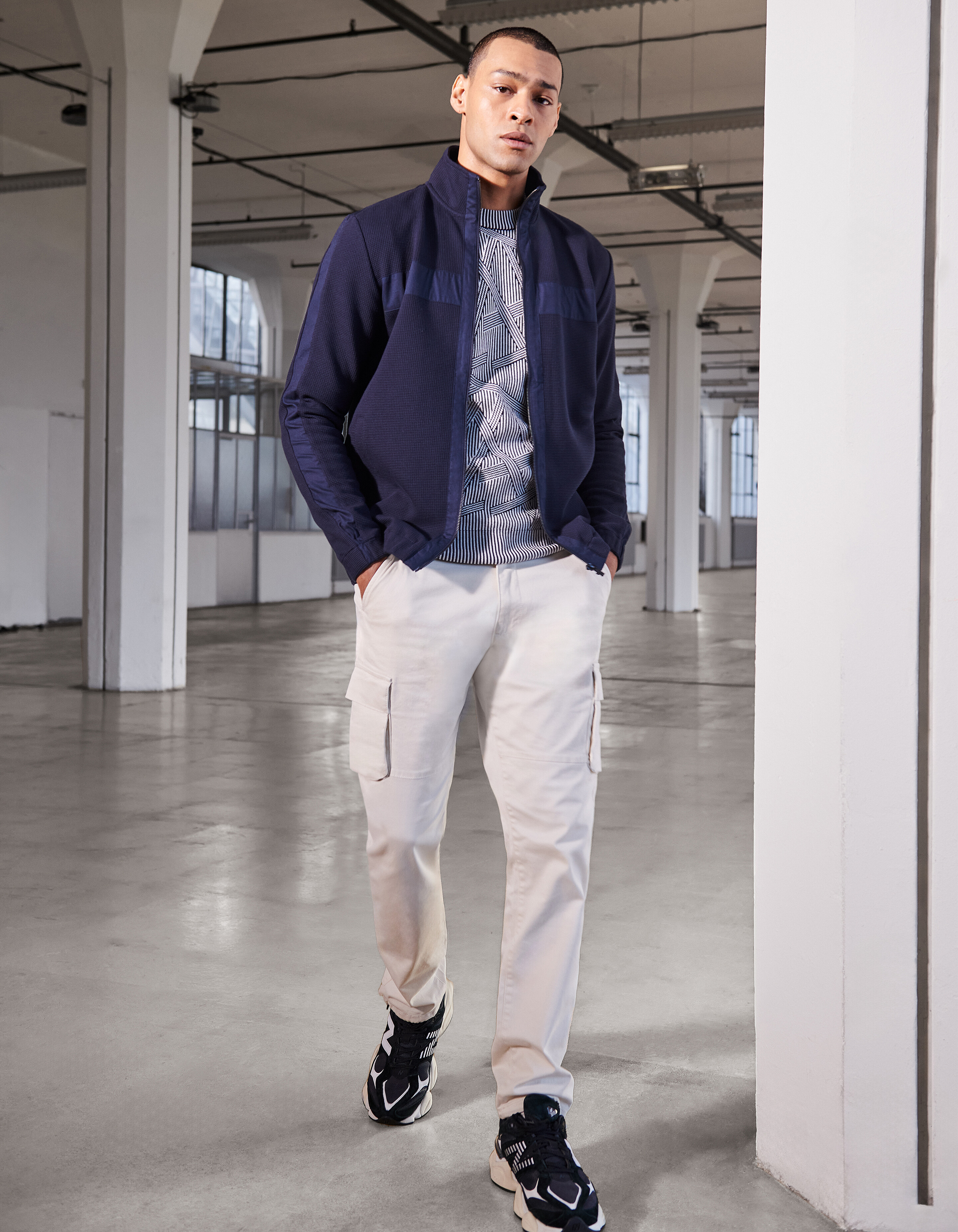 Casual meets stylish! De Structuur Bomber heeft lange mouwen, een hoge hals, een stretch stof, een ritssluiting, insteekzakken en een relaxed fit. Het item wordt gekenmerkt door de donkerblauwe kleur met een all-over structuur in de stof verwerkt. Een leuk detail zijn de sweater stof stukken gemixed met de structuur delen. Het is gemaakt van katoen, polyester en elastaan. Door deze samenstelling is het sterk van kwaliteit, vormvast, rekbaar en comfortabel. Draag het met een sweater en een stoere denim voor een casual look! Het model heeft een lengte van 185 cm en draagt maat M. Het artikel heeft een totale lengte van 78 cm bij maat M. Door katoenproducten te kiezen van Shoeby, steunt je onze inverstering in de missie van Better Cotton.