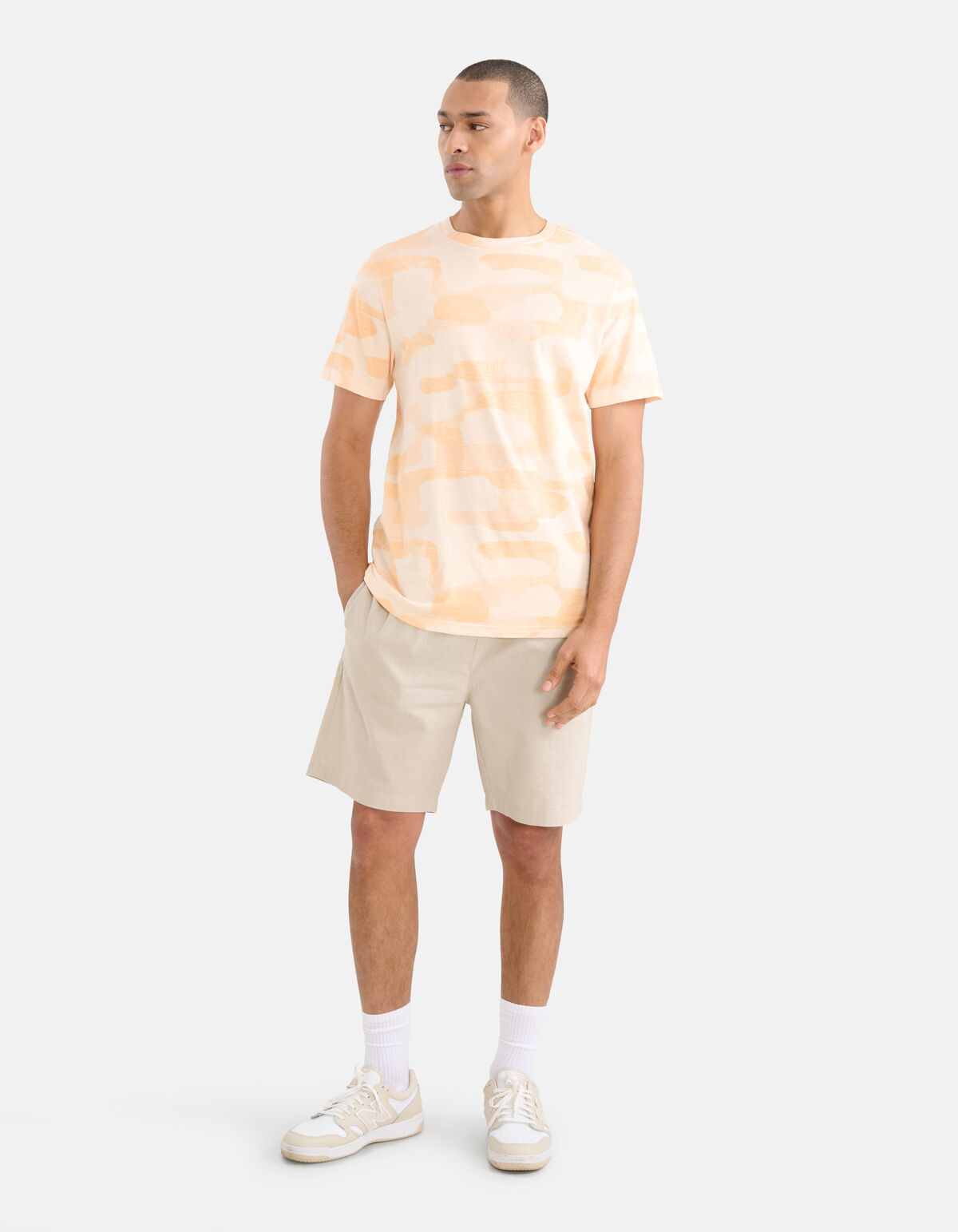 It's all about the details! Het Printed Camo T-shirt heeft korte mouwen, een hoge ronde hals, een low-stretch stof en een regular fit. Het item wordt gekenmerkt door de licht oranje kleur met een all-over camo print. Verder is het gemaakt van 100% katoen, hierdoor is het sterk van kwaliteit en comfortabel. Draag het samen met een korte broek voor een zomerse fit.