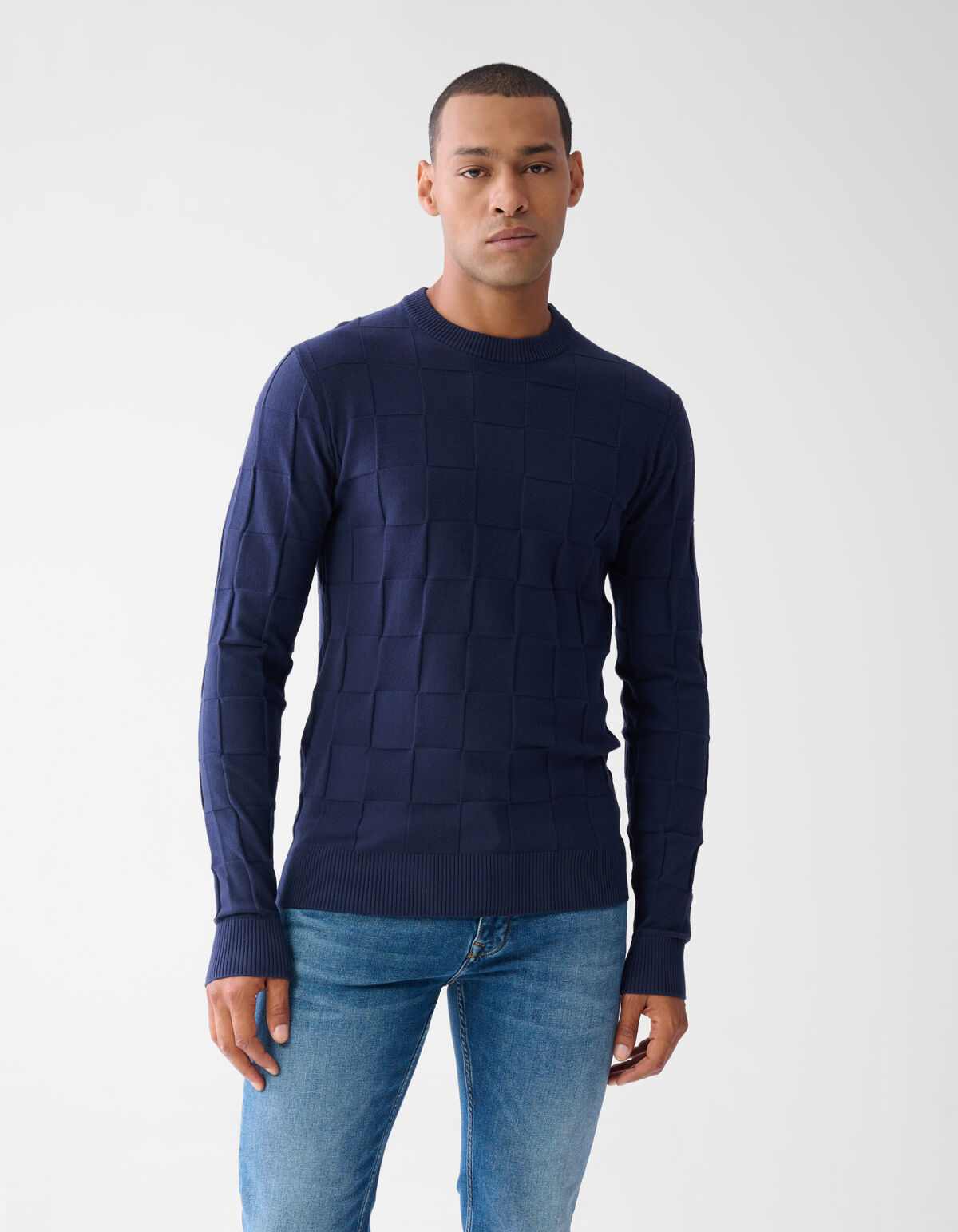 Musthave! De Structuur Sweater Donkerblauw heeft lange mouwen, een hoge ronde hals en een regular fit. Het item wordt gekenmerkt door de donkerblauwe kleur met een all-over structuur in de stof verwerkt. De sweater is gemaakt van katoen en polyamide. Deze samenstelling zorgt ervoor dat de sweater comfortabel draagt, sterk van kwaliteit en kleurvast is. De totale lengte van de trui is 71 cm bij een maat L. Het model heeft een lengte van 187 cm en draagt maat L. Draag de sweater samen met je favoriete jeans voor een complete look!