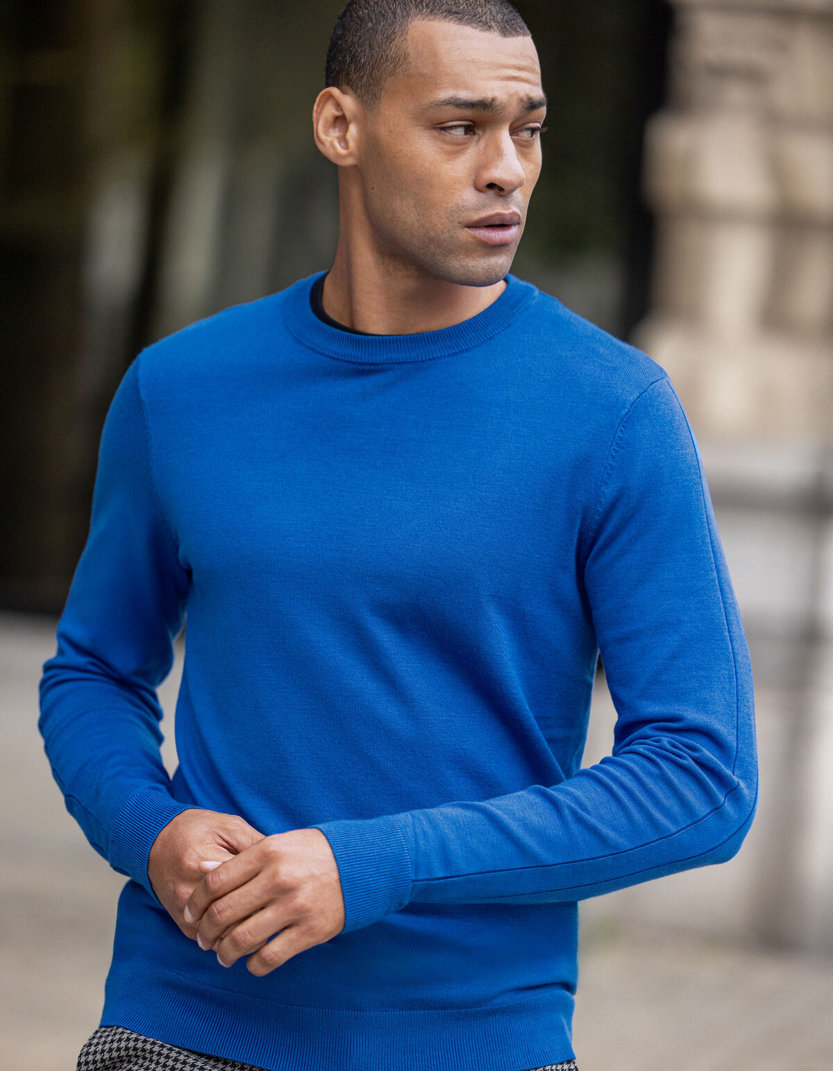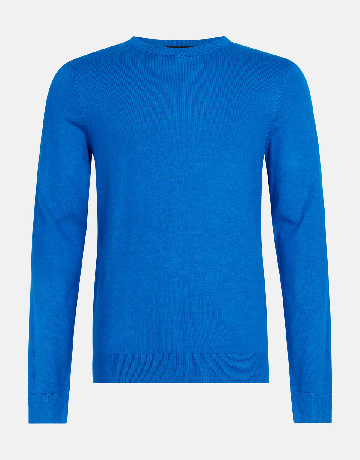 A touch of blue! De Crewneck Trui heeft lange mouwen, een hoge ronde hals, een fijn breisel, een stretch stof en een regular fit. Het item wordt gekenmerkt door de fel blauwe kleur met een jacquard streep bij de mouwen. Een jacquard stof is een bepaalde stof techniek, waardoor het patroon in de stof geweven wordt, hierdoor krijgt de trui een luxueus effect. Verder is het gemaakt van viscose en polyamide. Door deze samenstelling is het sterk van kwaliteit, vormvast, kleurvast en draagt het comfortabel. Maak de look compleet met je favoriete broek en je bent good to go! Het model heeft een lengte van 185 cm en draagt maat M. Het artikel heeft een totale lengte van 69 cm bij maat M.