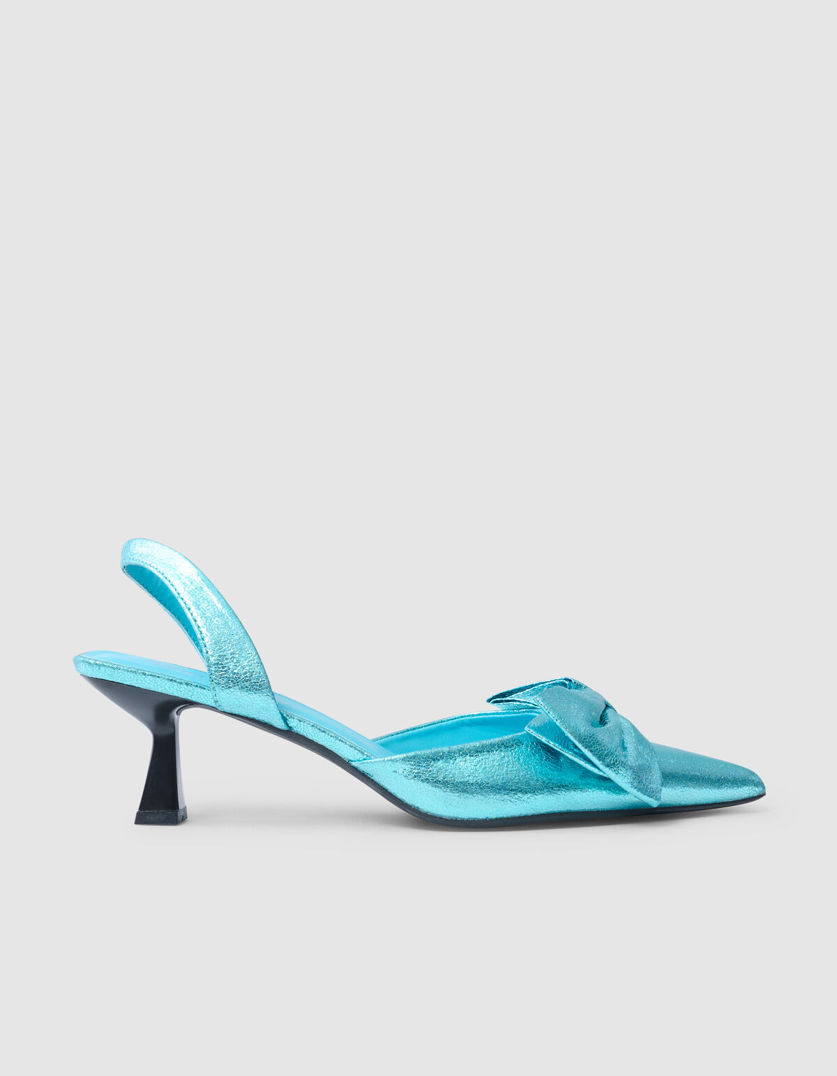 Ga voor chique en stijlvolle look met de Metallic Strik Hakken Blauw! De hakken hebben een blauwe kleur, een slanke vormgeving, een smalle hak en een spitse neus voor een vrouwelijke look. Uniek aan het item is de metallic kleur en de strik op de neus. Verder heeft het artikel een hielbandje, waardoor je voeten stevig in de schoenen blijven zitten. De hak heeft een totale hoogte van 3,5 cm.