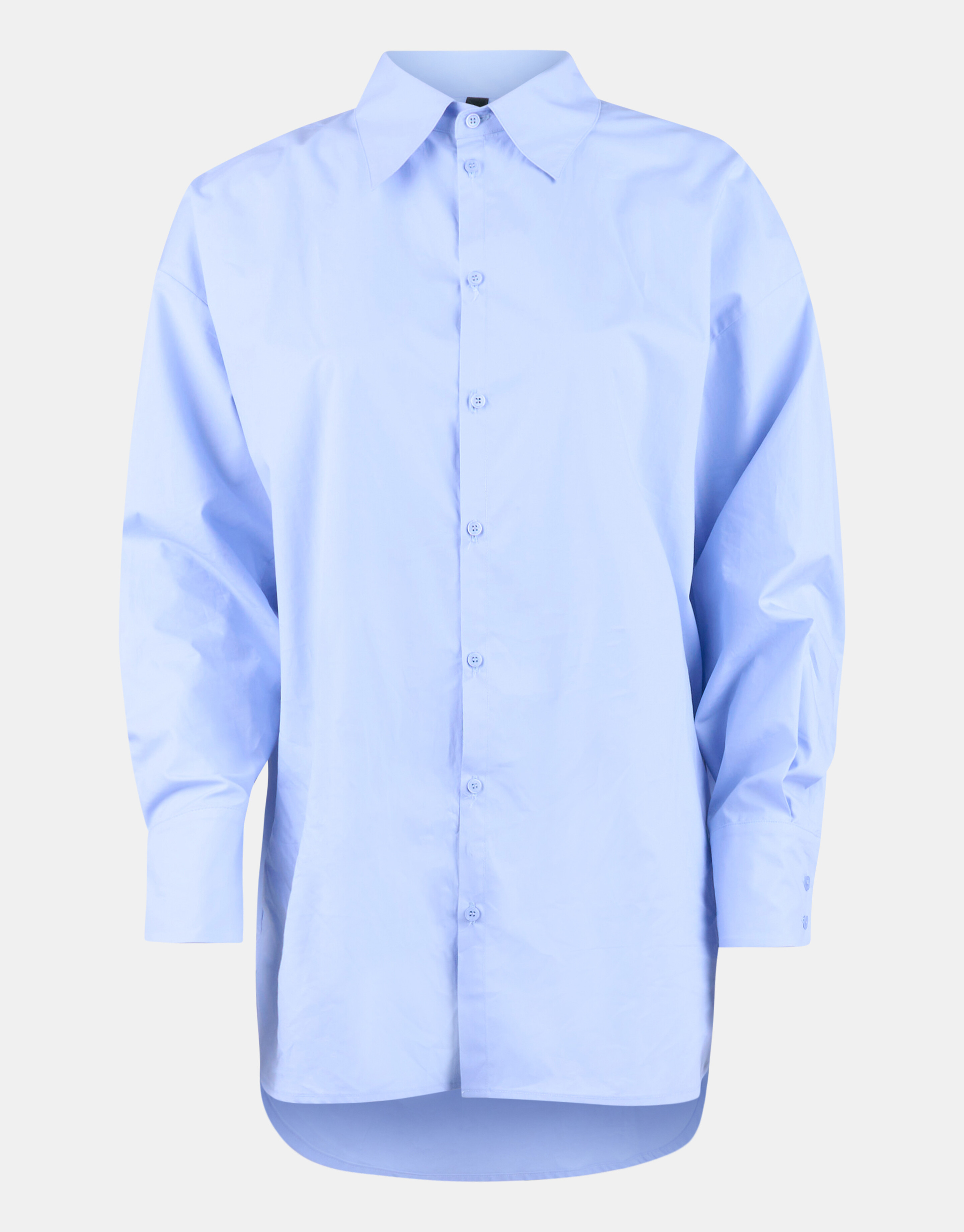 We love oversized! De Amber blouse heeft lange mouwen, een oversized fit, een blousekraag en een knoopsluiting. Het item wordt gekenmerkt door een licht blauwe kleur en valt aan de voorzijde wat korter uit. Combineer de blouse samen met een jeans en zilveren hakken. Het model heeft een lengte van 174 cm en draagt maat S. Het item heeft een totale lengte van 92 cm bij maat S.