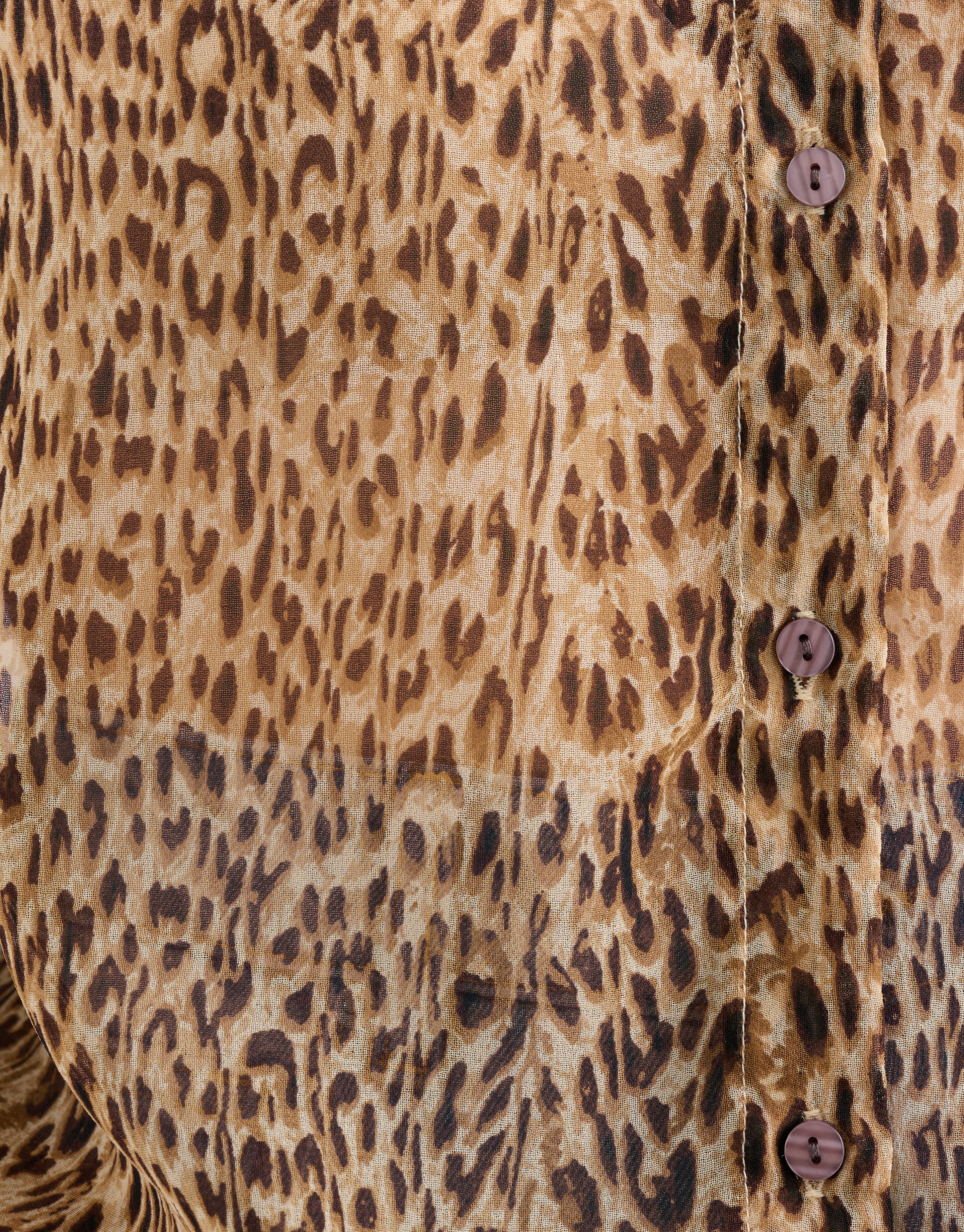 Print it! De Cheetah Blouse heeft lange mouwen, een kraag, een knoopsluiting en een oversized fit. Het item wordt gekenmerkt door de doorschijnende stof en de bruine kleur met een all-over cheetah print. Verder hebben de mouwen aan de onderzijde manchetten, hierdoor krijgen de mouwen een extra pof effect. Het is gemaakt van 100% polyester, waardoor het sterk van kwaliteit is en comfortabel draagt. Maak de look compleet met de bijpassende cheetah broek voor een complete set. Het model heeft een lengte van 173 cm en draagt maat S. Het artikel heeft een totale lengte van 79,5 cm bij maat S.