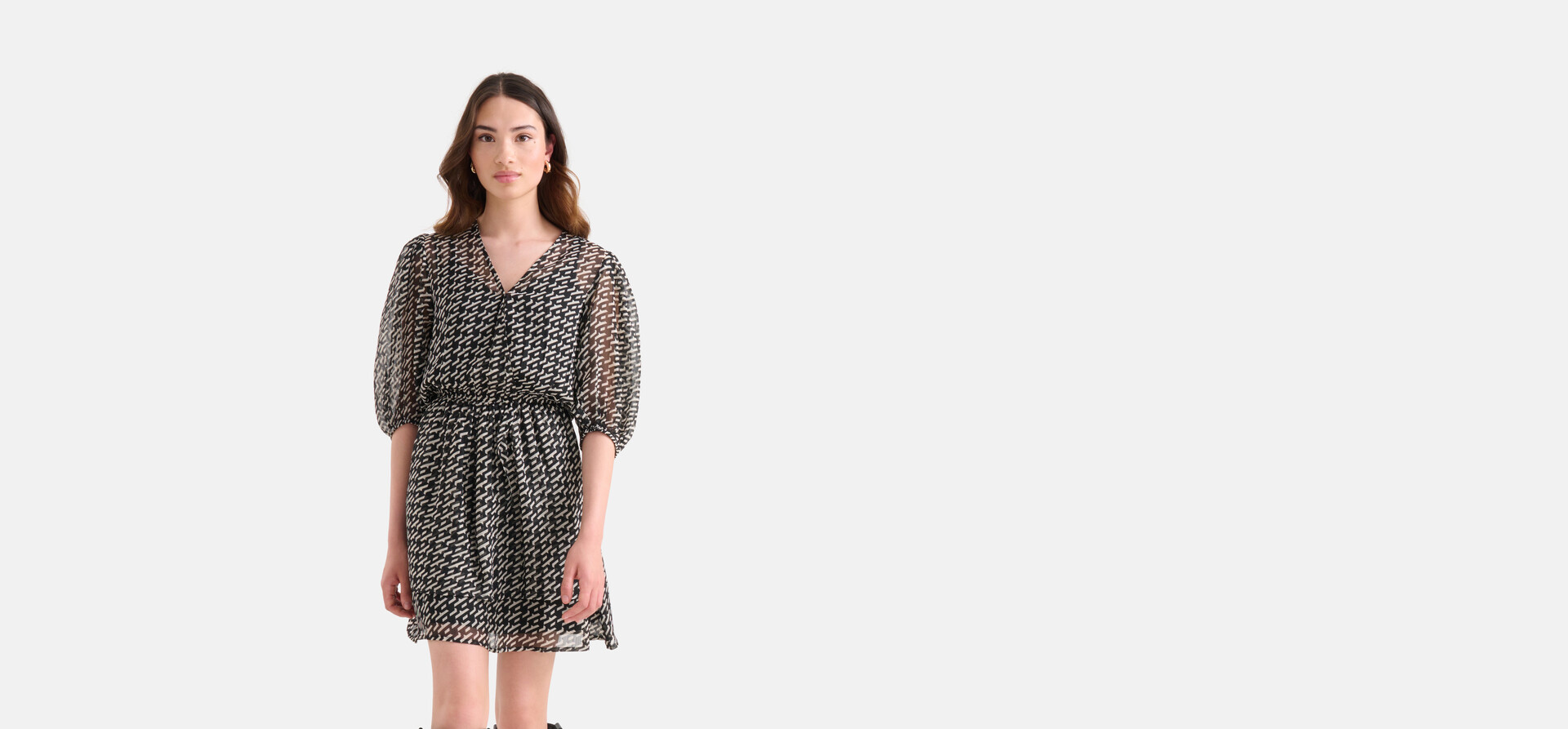 Grafische retro prints zijn de perfecte mix van vintage charme en moderne flair. Shoeby tilt jouw stijl naar een hoger niveau! De Grafische Chiffon Jurk heeft een driekwart mouw, een mini-lengte, een v-hals, een knoopje bij de hals, een uitlopend model en een non-stretch stof. Het item wordt gekenmerkt door de zwarte kleur met een witte all-over retro grafische print. Verder heeft de jurk een elastieke band bij de onderzijde van de mouwen en in de taille, hierdoor wordt de taille extra geaccentueerd. De onderzijde heeft een lining aan de binnenkant en de bovenzijde van de jurk is transparant. Wil je niet dat dit doorschijnend is? Combineer dan een Shoeby basis top voor eronder. De jurk is gemaakt van 100% polyester, hierdoor is het sterk van kwaliteit en vormvast. Combineer het samen met hoge leren laarzen voor een moeiteloze stoere uitstraling! Het model heeft een lengte van 174 cm en draagt maat S. Het artikel heeft een totale lengte van 91 cm bij maat S.