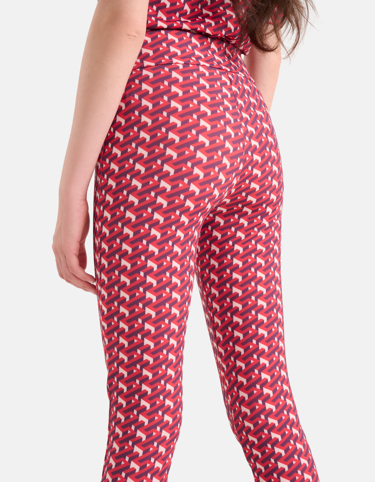 Turn heads in fiery red! Unleash your bold and passionate style met de Grafische Travel Legging. De legging heeft een hoge taille, een aangesloten skinny fit, een stretch stof en een elastieke band in de taille. Het item wordt gekenmerkt door de travel stof en de rode kleur met een all-over grafische retro print. Door de stretch stof zit er veel rekbaarheid in de legging, waardoor het goed in vorm blijft en heerlijk zit. Daarnaast is travelstof kreukvrij, waardoor jij zonder zorgen de legging uit je garderobe of koffer kan pakken. Het is gemaakt van polyamide en elastaan. Door deze samenstelling is het sterk van kwaliteit, vormvast, stretchy, sneldrogend en draagt het comfortabel. Get the perfect blend of comfort and style! Combineer het samen met een retro travel top, een rode blazer en een paar chunky sneakers voor een edgy look. Het model heeft een lengte van 174 cm en draagt maat S. Het artikel heeft een binnenbeenlengte van 74 cm bij maat S.