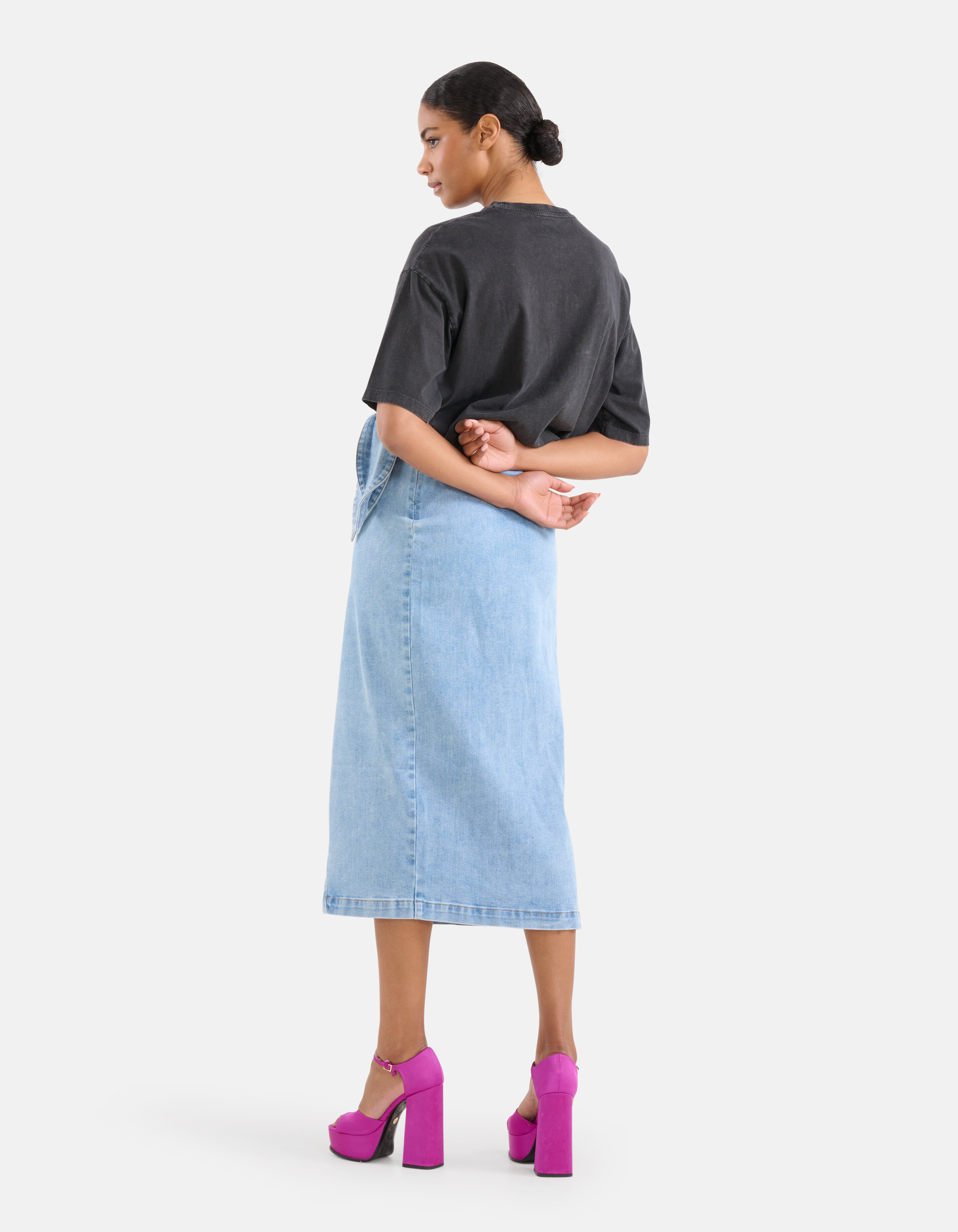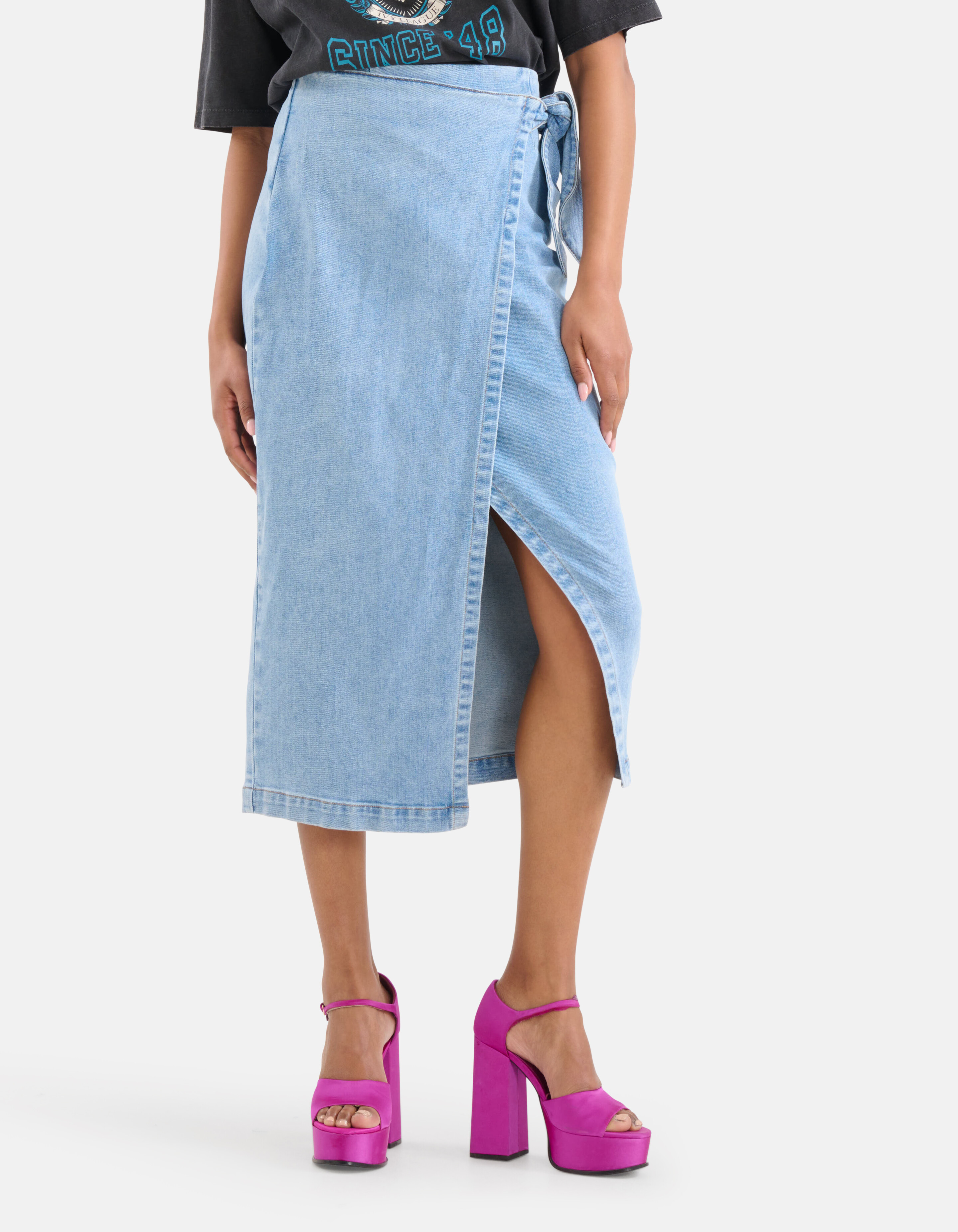 Effortlessly chic! De Denim Midi Rok heeft een hoge taille, een regular fit, een midi-lengte en een non-stretch stof. Het item wordt gekenmerkt door de blauwe denim kleur en overslag met strikdetail. Verder is de rok gemaakt van 100% katoen. Door deze samenstelling is het vormvast, kleurvast en draagt het comfortabel.