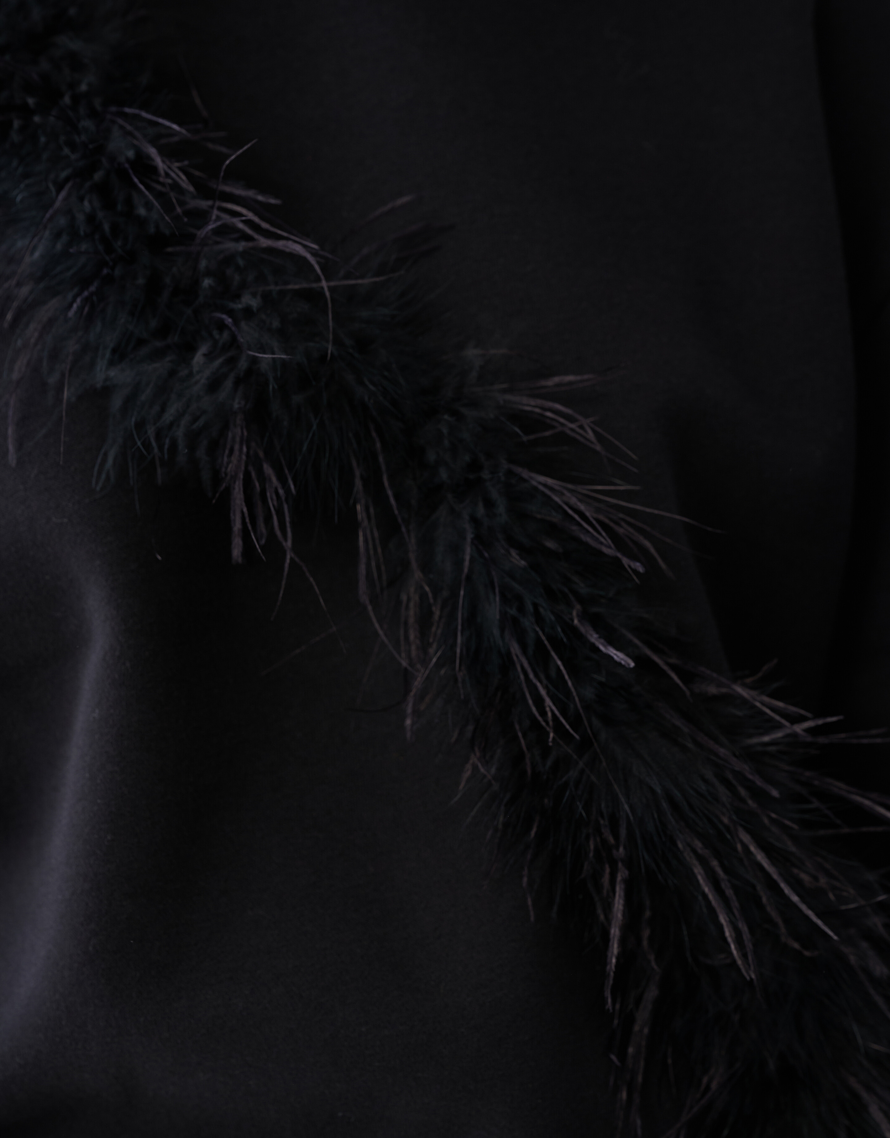 Maak kennis met de Feather Sweater Zwart, een mix van casual comfort en semi-formele stijl. De sweater heeft een zwarte kleur, een relaxed fit, lange mouwen en een ronde hals. De sweater heeft een totale lengte van 58 cm bij een maat XS/S. Het model heeft een lengte van 176 cm en draagt een maat XS/S. Er wordt geadviseerd de veren van de sweater af te halen voor het wassen. De veren kunnen door de drukknoopjes van de sweater afgehaald worden. Combineer de sweater op jouw favoriete broek voor een complete look!