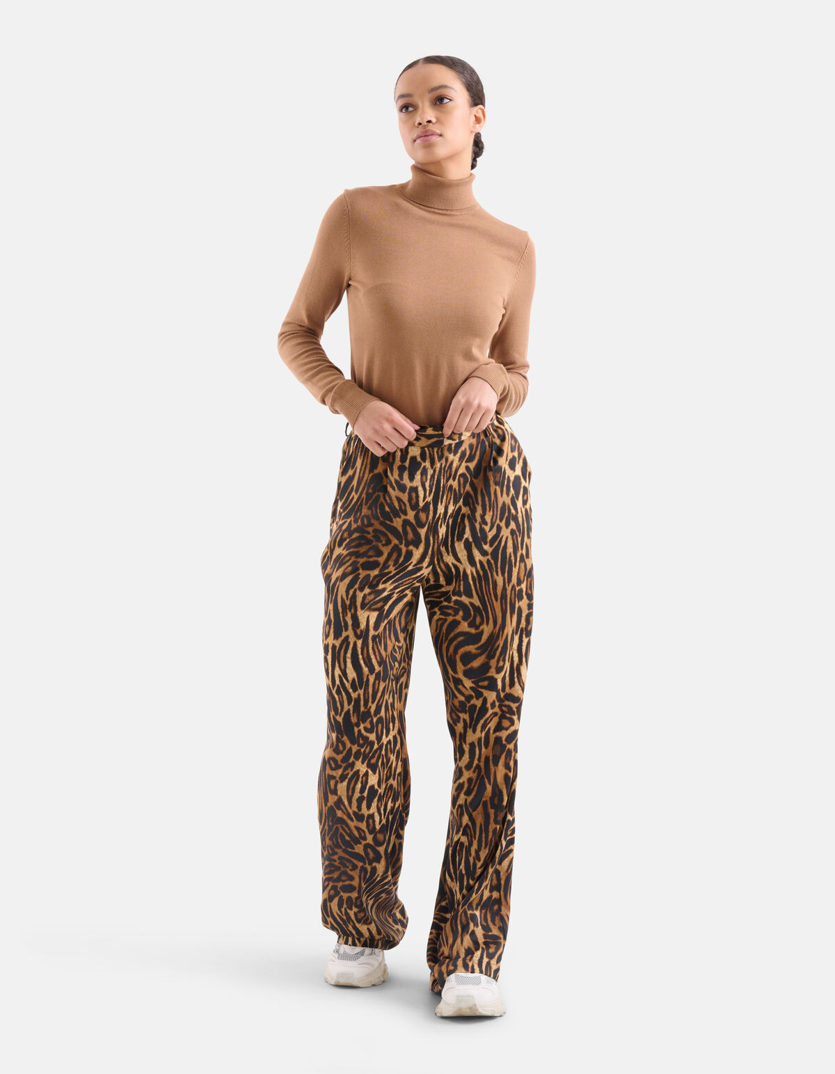 Winter musthave! De Basis Coltrui heeft lange mouwen, een aansluitende fit en een hoge opgerolde kraag. Het item wordt gekenmerkt door de bruine kleur en een fijn breisel. De trui is gemaakt van viscose en nylon, waardoor het item fijn draagt, vormvast blijft en kreukvrij is. Combineer het samen met een leopard print broek en sneakers voor een trendy look! Het model heeft een lengte van 173 cm en draagt maat S. Het artikel heeft een totale lengte van 62 cm bij maat S.