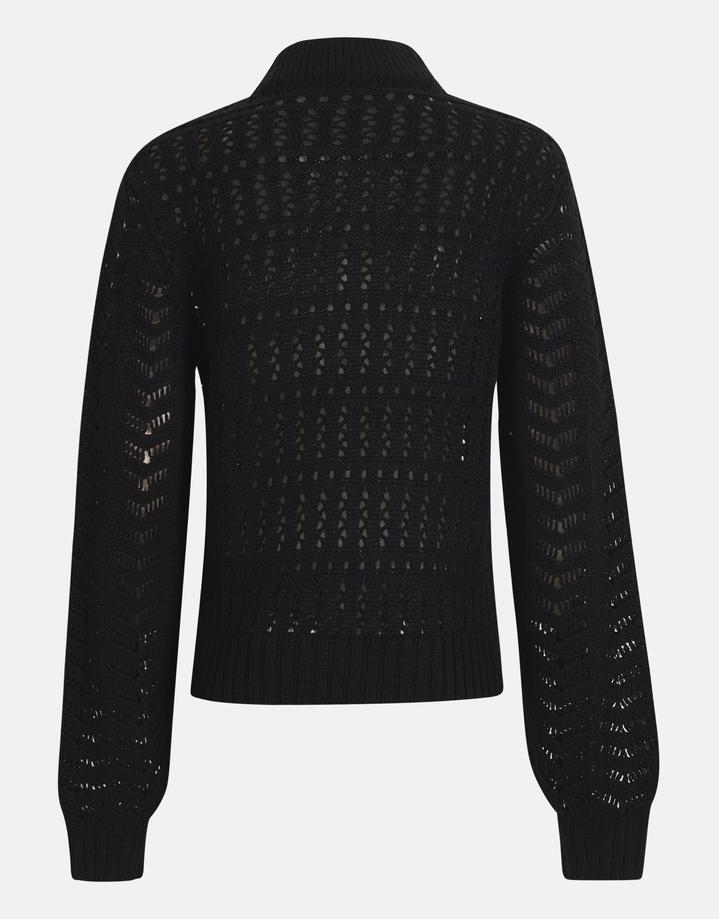 Perfect in black! De Opengewerkte Trui heeft lange mouwen, een hoge ronde hals, een stretch stof en een regular fit. Het item wordt gekenmerkt door het fijne breisel, de zwarte kleur met all-over opengewerkte details. Door het opengewerkte detail is de trui licht transparant. Heb je dit liever niet? Combineer dan een Shoeby basis top voor eronder. Het is gemaakt van 100% acryl, waardoor het even warm aanvoelt als wol. Draag het samen met een metallic broek en een paar hakken voor een stylish look! Het model heeft een lengte van 176 cm en draagt maat S. Het artikel heeft een totale lengte van 63,5 cm bij maat S.