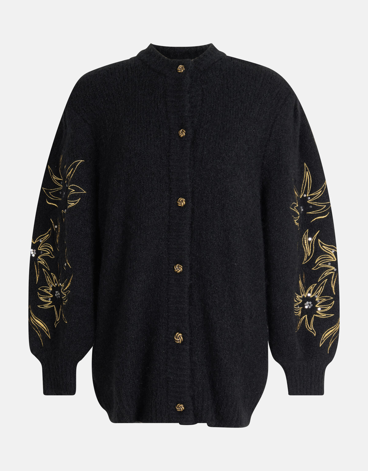 Sophisticated with a casual twist! Het Embroidery Vest heeft lange mouwen, een stretch stof, een hoge hals, schoudervullingen en een oversized fit. Het item wordt gekenmerkt door het fijne breisel, de zwarte kleur met gouden embroidery details op de mouwen. Een leuk detail zijn de gouden knopen en de zilveren pailletten op de mouwen voor een extra sparkling touch! Verder is het vest gevoerd aan de binnenkant. Het is gemaakt van polyester, polyamide, wol en elastaan. Door deze samenstelling is het sterk van kwaliteit, vormvast, kleurvast, rekbaar en warm van stof. Draag het samen met een legging en een paar chunky laarzen voor een stylish look! Het model heeft een lengte van 176 cm en draagt maat S/M. Het artikel heeft een totale lengte van 79 cm bij maat S/M.